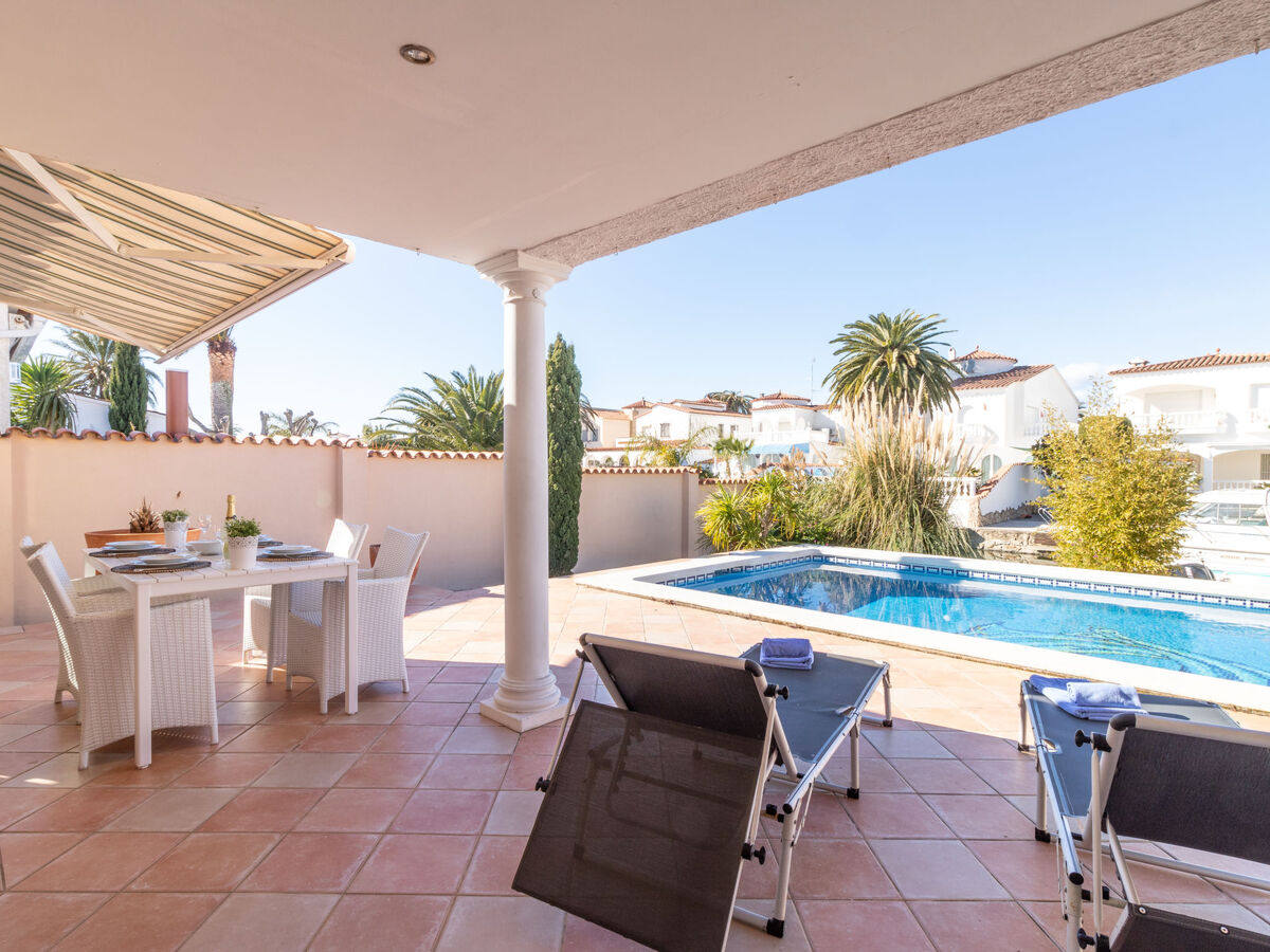 Dans le quartier de Medes, à 1 km du centre d'Empuriabrava, situation tranquille, ensoleillée quartier résidentiel, zone avec peu de trafic, à 900 m de la mer, juste au bord du canal, dans une impasse.