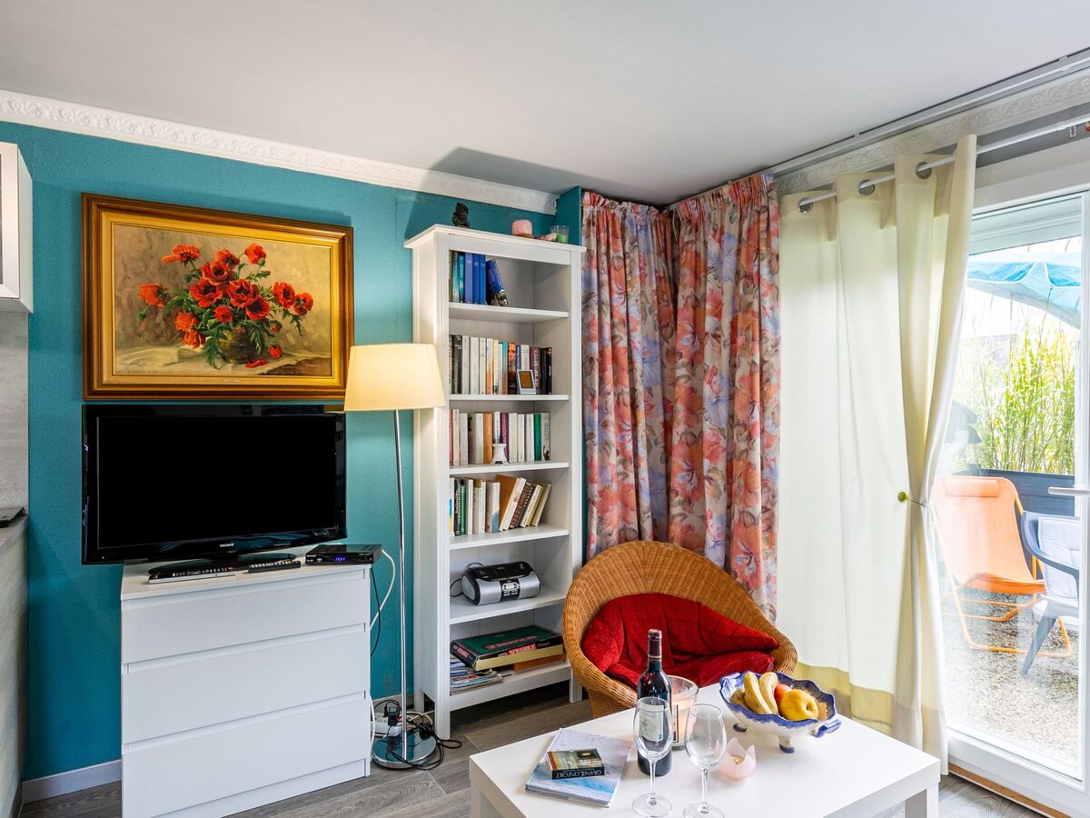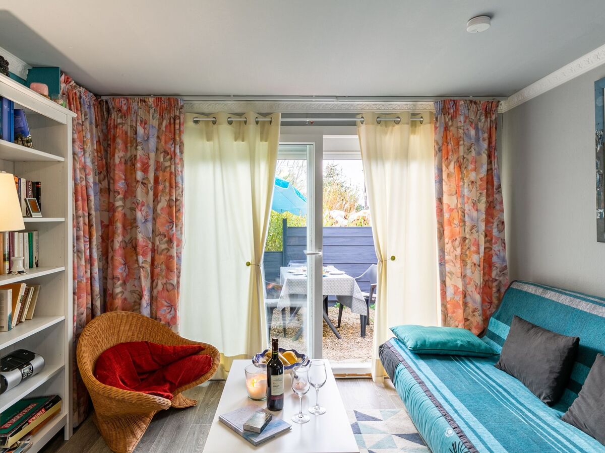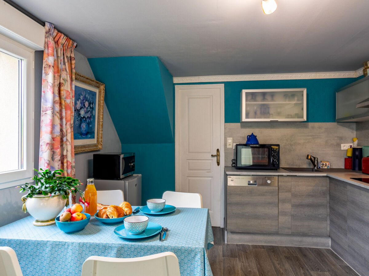 Aménagement fonctionnel et plaisant: cuisine/séjour (lave-vaisselle, 4 plaques vitrocéramiques, grille-pain, bouilloire électrique, cafetière électrique, combiné micro-ondes) avec table pour les repas et TV (satellite).