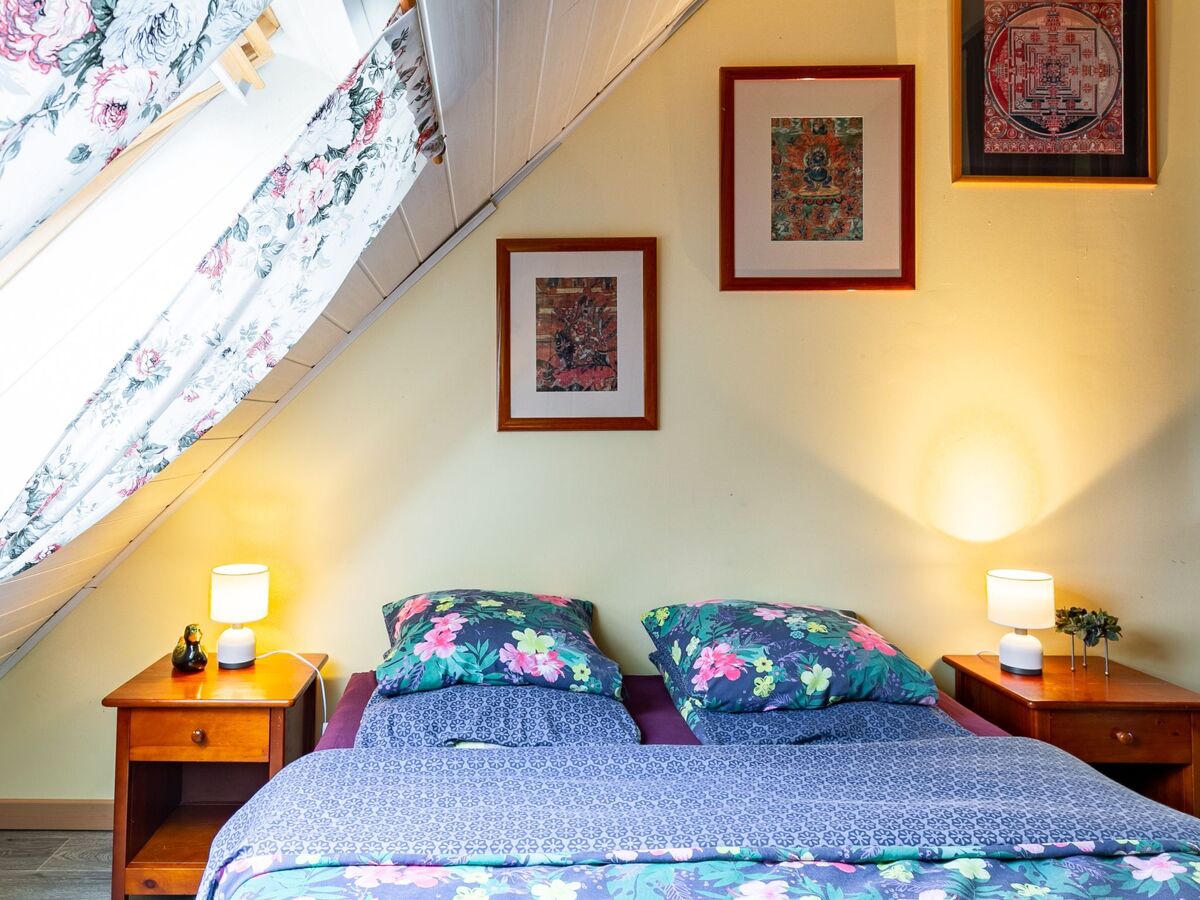 1 chambre, mansardée, ouverte avec fenêtre sous le toit avec 1 lit.