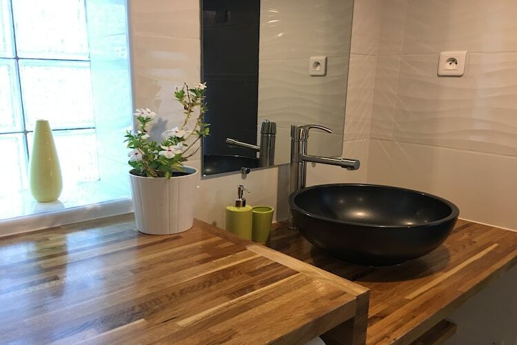 Rez-de-chaussée: (cuisine ouverte(foyer, bouilloire, grille-pain, hotte, cafetière/percolateur, four, micro ondes, combinaison réfrigérateur/congélateur, lave-linge ), salle à manger-salon(canapé-lit double(140 x 190 cm), TV(écran plat, chaînes de télévision internationales), table(4 personnes), coin salon, climatisation), chambre(lit double grande taille(160 x 200 cm)), salle de bains(douche(cabinet), lavabo, WC, sèche-cheveux), table à repasser, fer à repasser) table(4 personnes), terrasse(privé, 30 m2), jardin(clôturé, illuminé, 6000 m2), mobilier de jardin, transats, barbecue, piscine(privé, 8 x 4 m., ouvert de 1/2 Mai jusqu'à (inclus) Sept), terrain de pétanque, eau du puit