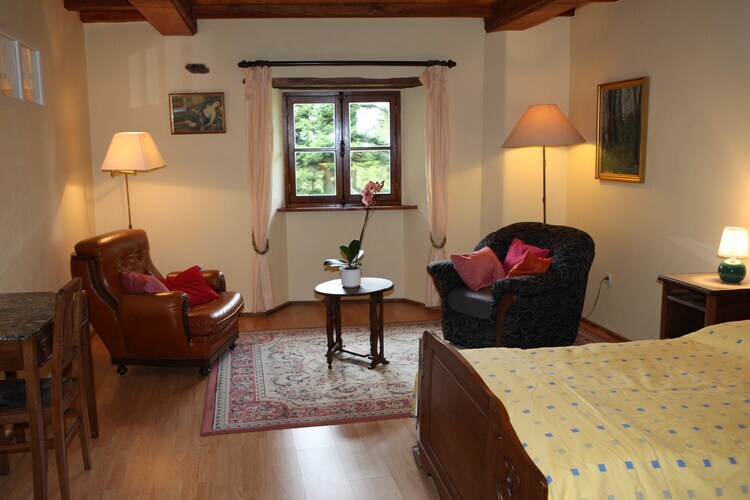 Rez-de-chaussée: (hall d'entrée, cuisine ouverte(bouilloire, plaque de cuisson(vitrocéramique), cafetière/percolateur, four, micro ondes, combinaison réfrigérateur/congélateur), salle à manger-salon(table, cheminée, coin salon, installation stéréo), WC) Au 1er étage: (chambre(lit double(140 x 190 cm), TV(satellite, digital)), chambre avec salle de bains(lit double(160 x 200 cm), douche, lavabo, WC)) lave-linge , chauffage(électrique), jardin(partagé avec le propriétaire, clôturé), mobilier de jardin, barbecue(électrique), parking, vélos disponibles, baby crib(free)