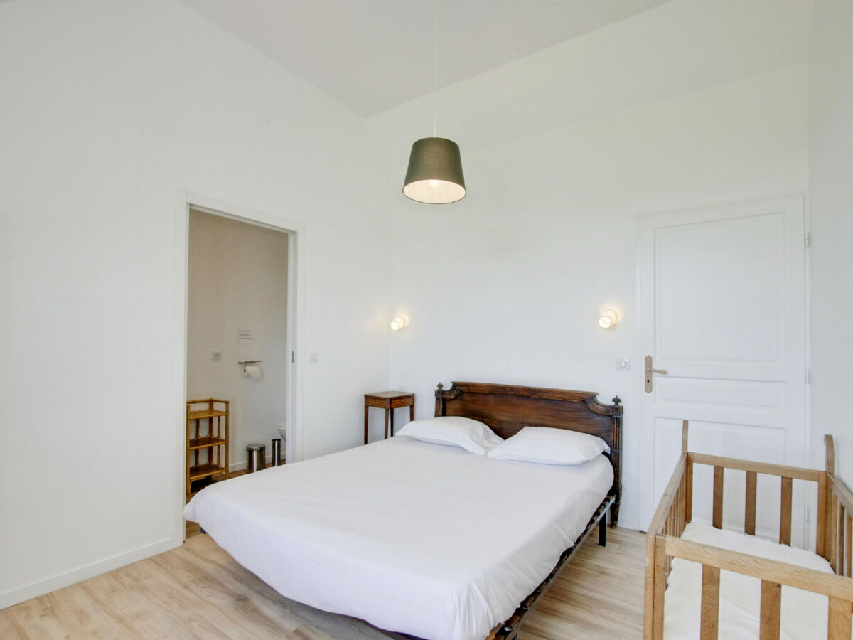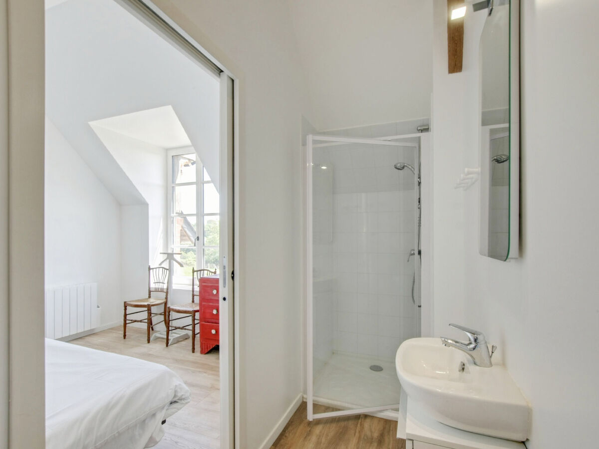 1 chambre avec 1 grand-lit (1 x 160 cm, longueur 200 cm), douche/WC.