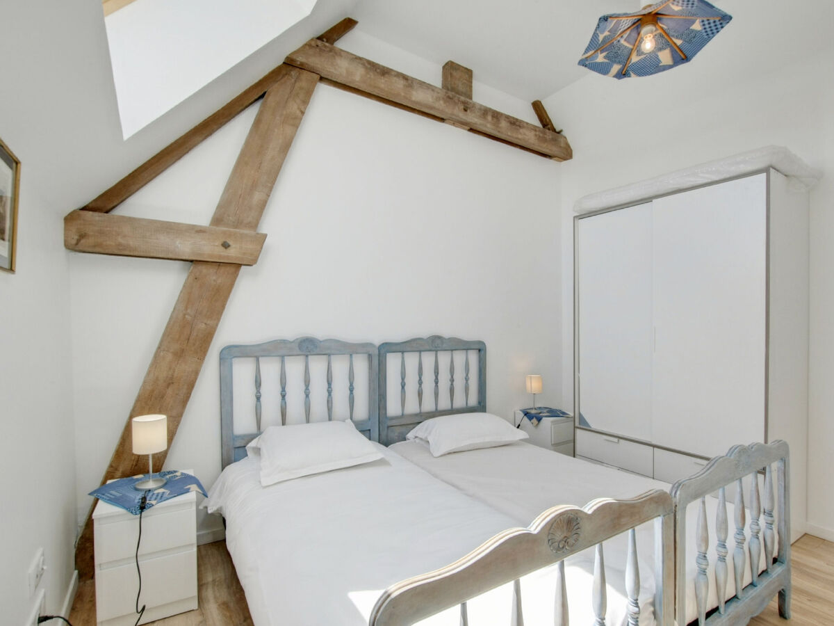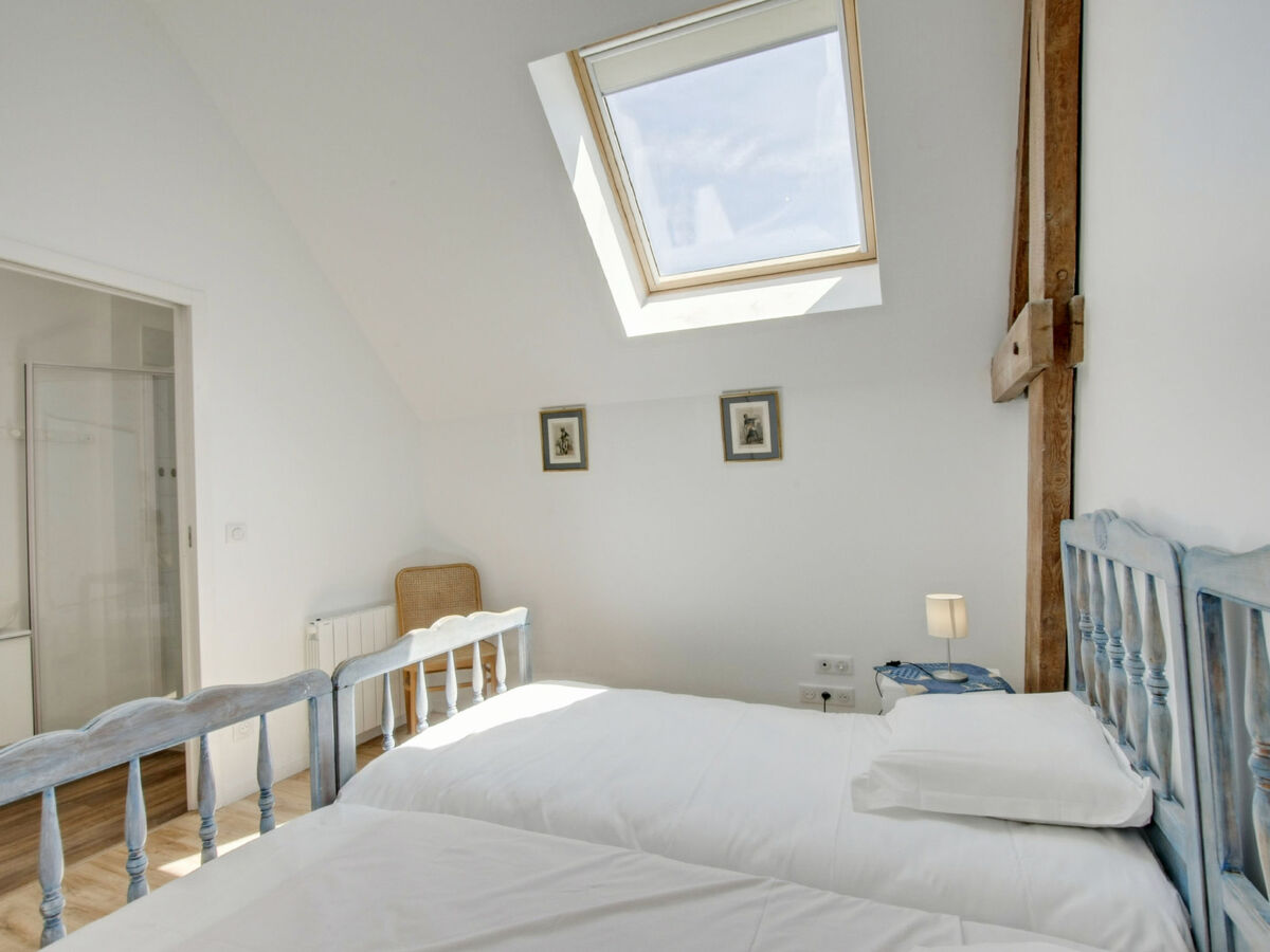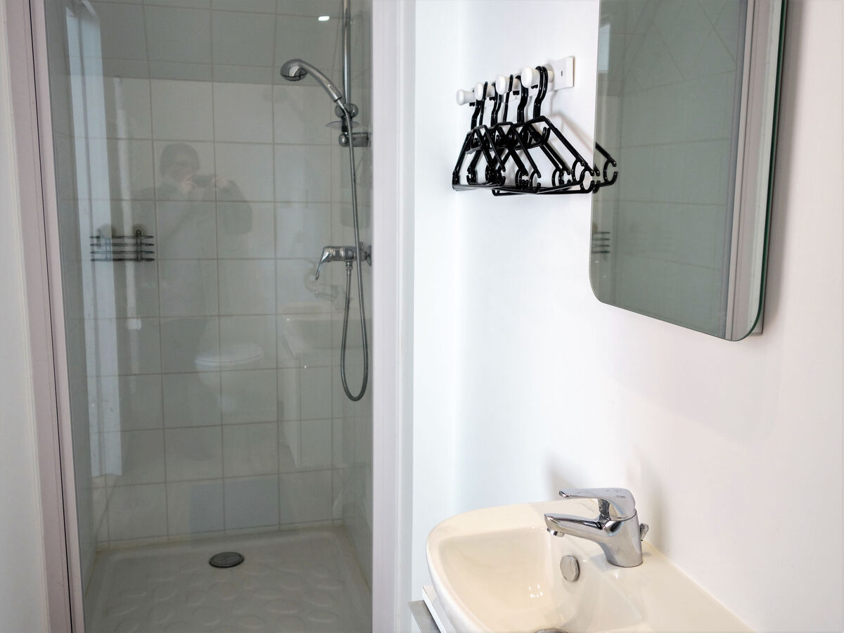 1 chambre avec 2 lits (90 cm, longueur 200 cm), douche/WC.