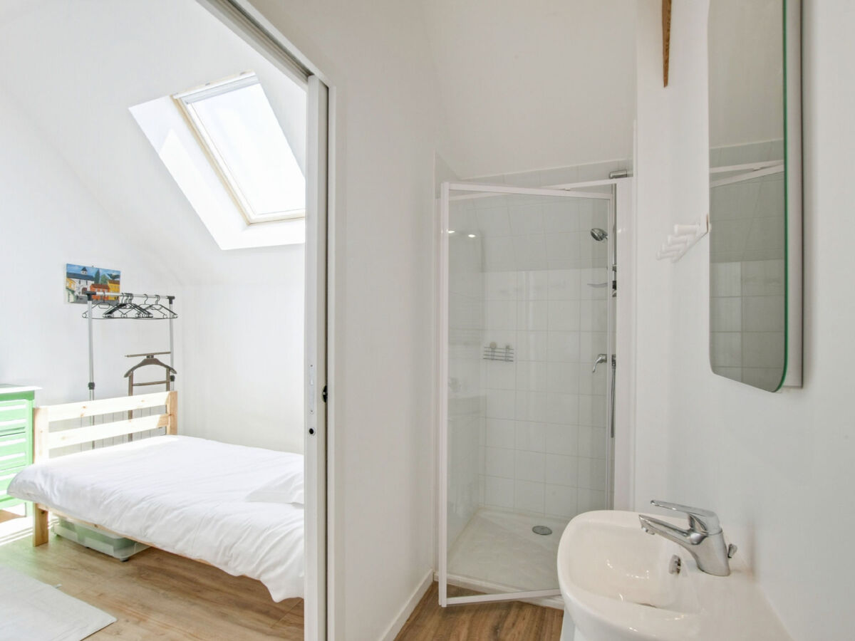 1 chambre avec 1 grand-lit (1 x 140 cm, longueur 190 cm), douche.