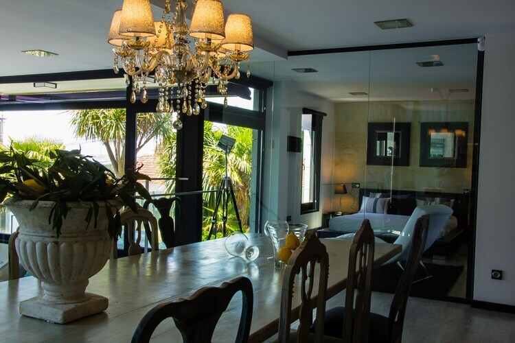 Cette maison de vacances de luxe a été conçue par un célèbre architecte local et située sur la côte de Sanxenxo. Les vues panoramiques sur l'océan sont spectaculaires et la propriété est idéale pour des vacances en famille et entre amis.