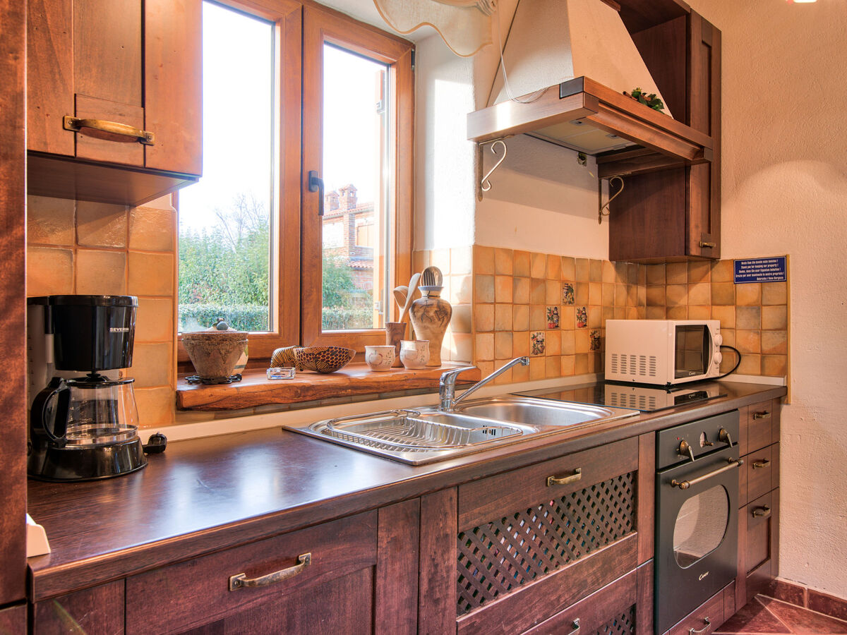 Cuisine ouverte (four, lave-vaisselle, 4 plaques vitrocéramiques, grille-pain, bouilloire électrique, micro-ondes, cafetière électrique).