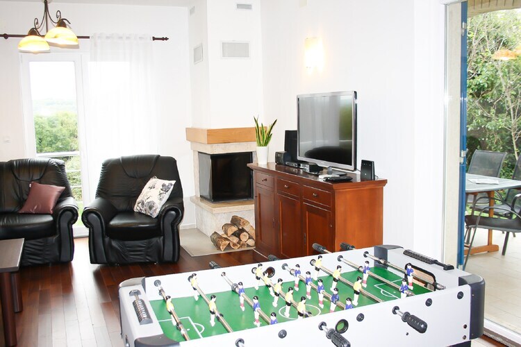 Rez-de-chaussée: (Salle de séjour(canapé-lit double, TV(écran plat, satellite), cheminée, coin salon, Lecteur DVD, installation stéréo), cuisine(table, bouilloire, grille-pain, plaque de cuisson, cafetière/percolateur, four, micro ondes, lave-vaisselle , combinaison réfrigérateur/congélateur), chambre(lit double, climatisation), salle de bains(douche, lavabo, WC, lave-linge ), terrasse(privé)) Au 1er étage: (chambre(lit double, climatisation), chambre(lit double, climatisation), chambre(Lit superposé, climatisation), salle de bains(baignoire-douche, lavabo, WC), terrasse(privé, clôturé)) lit bébé, balcon, patio, climatisation, cour(privé), terrasse, jardin, mobilier de jardin, transats, barbecue, parking, parasol, piscine(privé), équipements de jeux, tennis de table/ping-pong, baby-foot, chaise haute, table à repasser, fer à repasser, salon de jardin