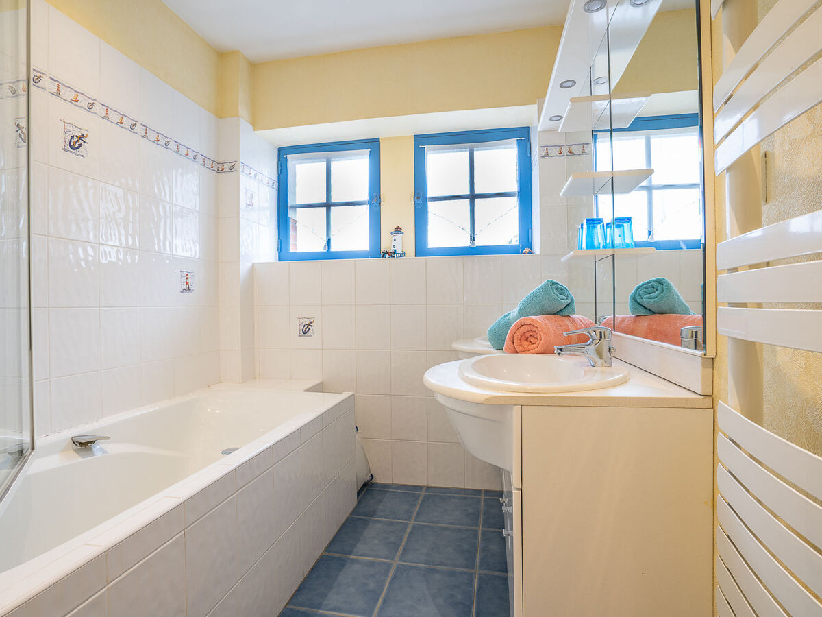 Bain/douche, WC séparé, double vasque.