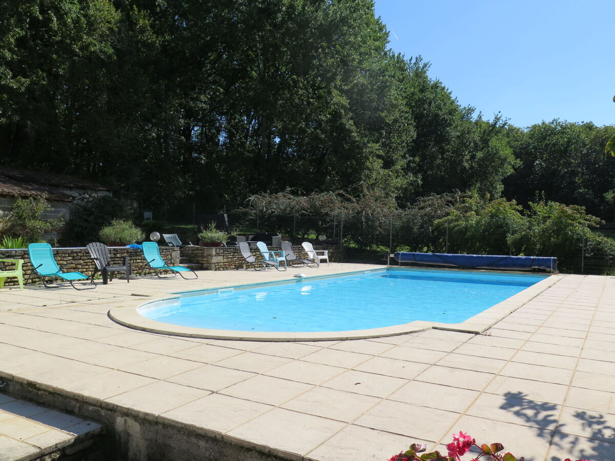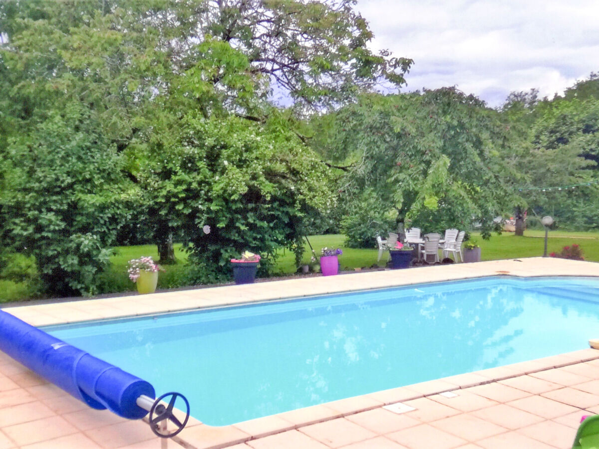 A usage privé: grand jardin (clôturé) avec pelouse 700 m2 arbres, piscine (10 x 5 m, profondeur 100 - 170 cm, disponibilité saisonnière: 01.Jan.