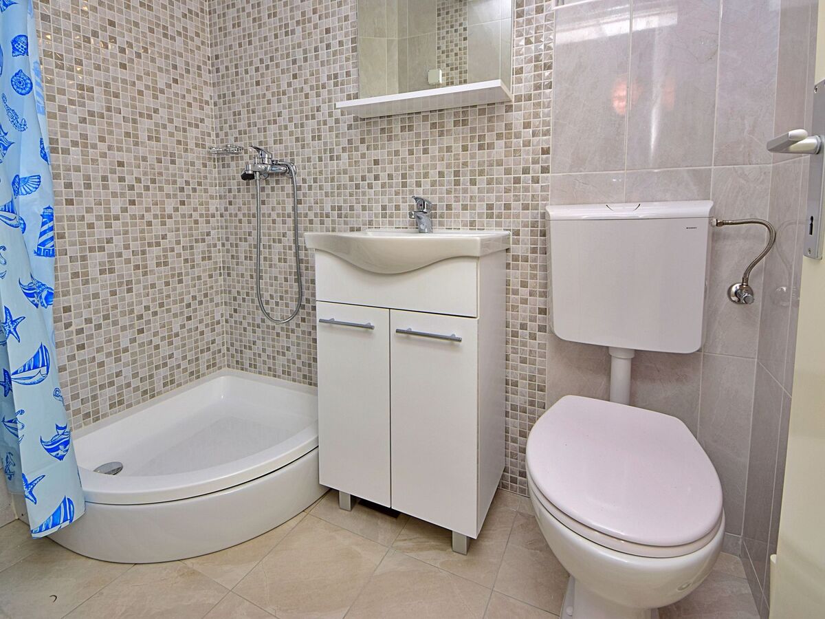 1 chambre avec 1 grand-lit (160 cm, longueur 200 cm), douche/WC.