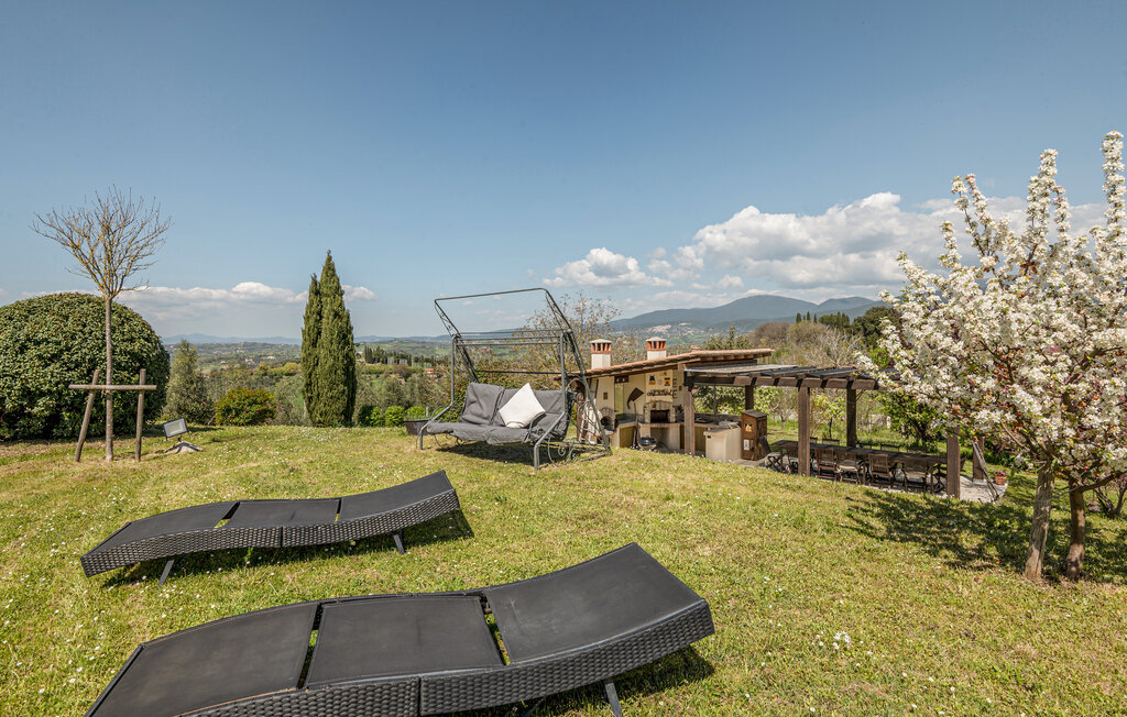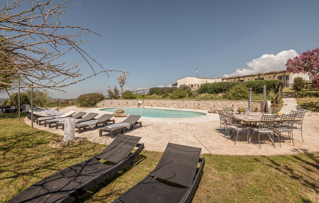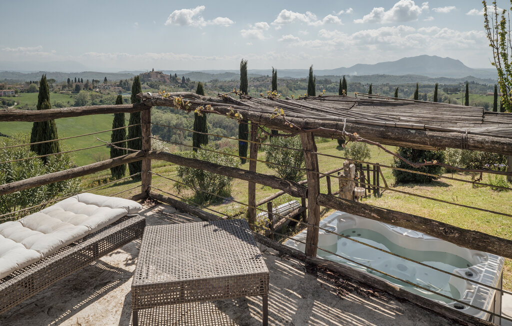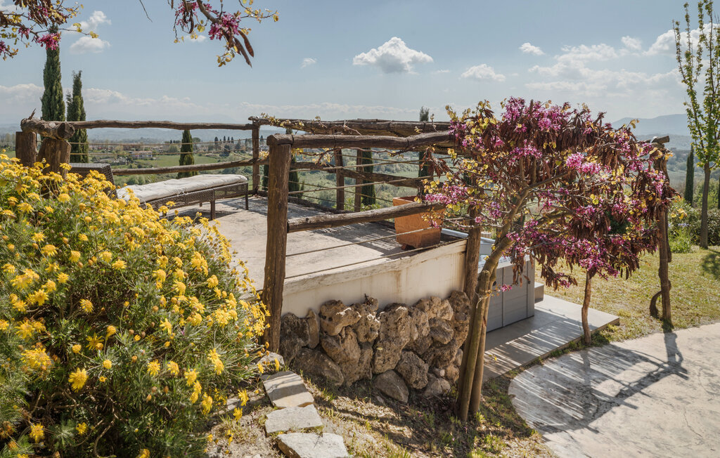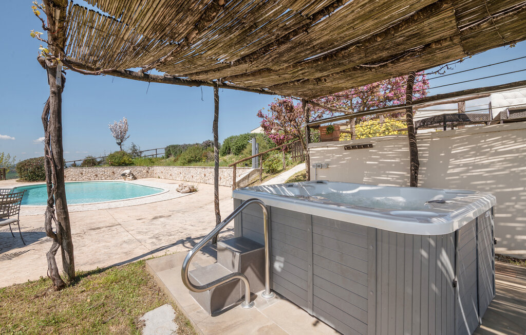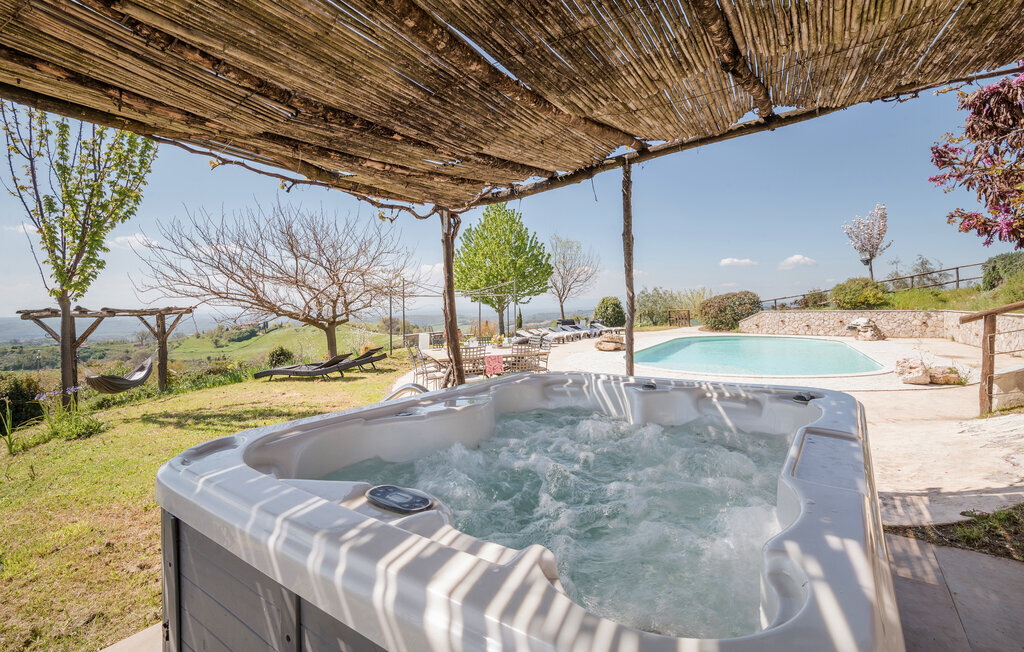 Bien-être à l'extérieur : Location de vacances disposant de chaises-longues et d'un ou plusieurs équipements tels que piscine extérieure, jacuzzi extérieur, lit à baldaquin de jardin etc...