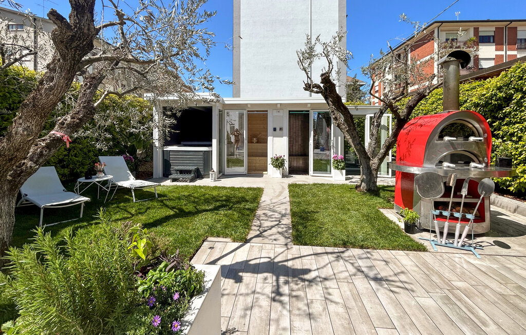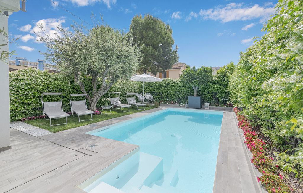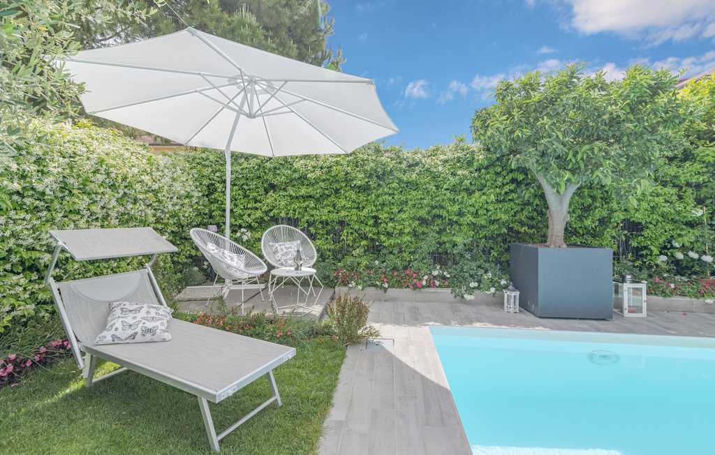 Bien-être à l'extérieur : Location de vacances disposant de chaises-longues et d'un ou plusieurs équipements tels que piscine extérieure, jacuzzi extérieur, lit à baldaquin de jardin etc...