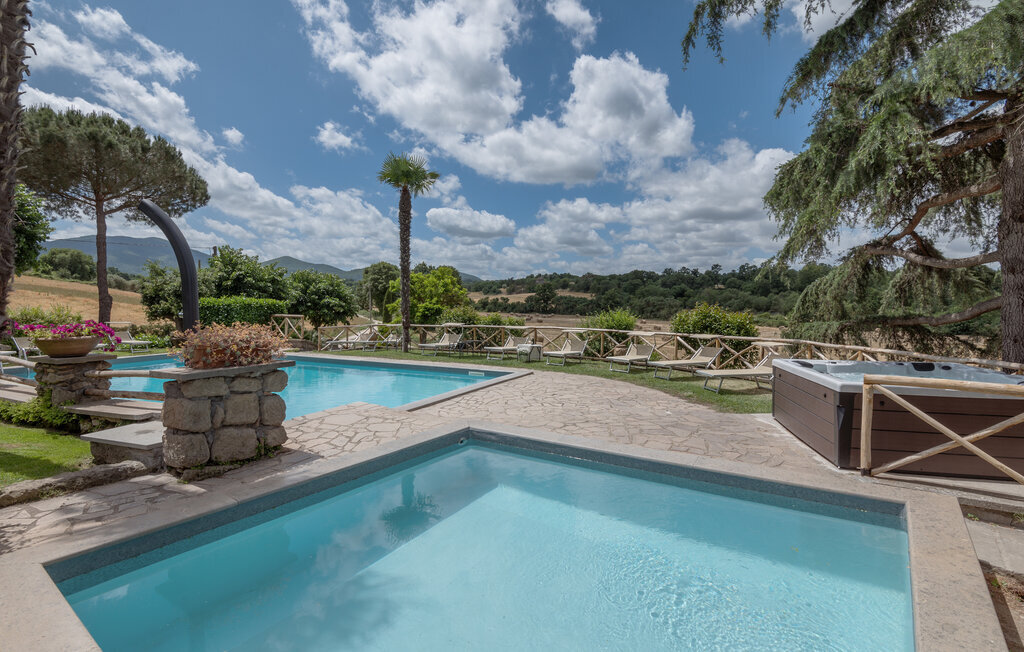 Bien-être à l'extérieur : Location de vacances disposant de chaises-longues et d'un ou plusieurs équipements tels que piscine extérieure, jacuzzi extérieur, lit à baldaquin de jardin etc...