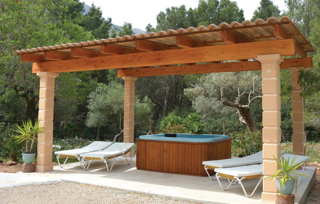 L'espace extérieur de la finca est idéal pour profiter du climat méditerranéen. Rafraîchissez-vous dans le jacuzzi ou détendez-vous sur l'une des chaises longues. La terrasse couverte avec des sièges vous invite à vous détendre tout en profitant de la vue sur l'impressionnant paysage de montagnes.