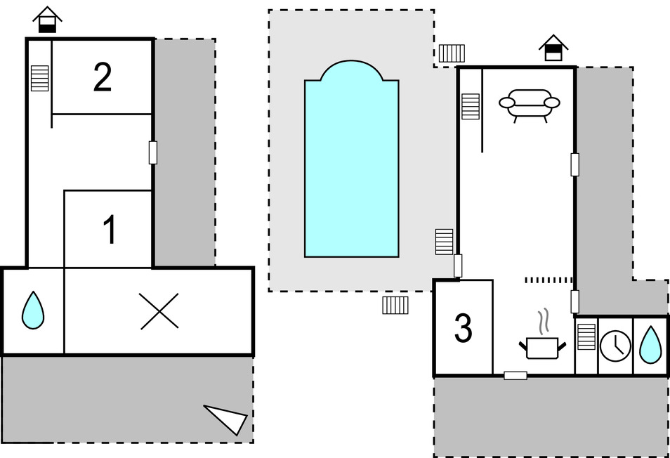 Bien-être à l'extérieur : Location de vacances disposant de chaises-longues et d'un ou plusieurs équipements tels que piscine extérieure, jacuzzi extérieur, lit à baldaquin de jardin etc...