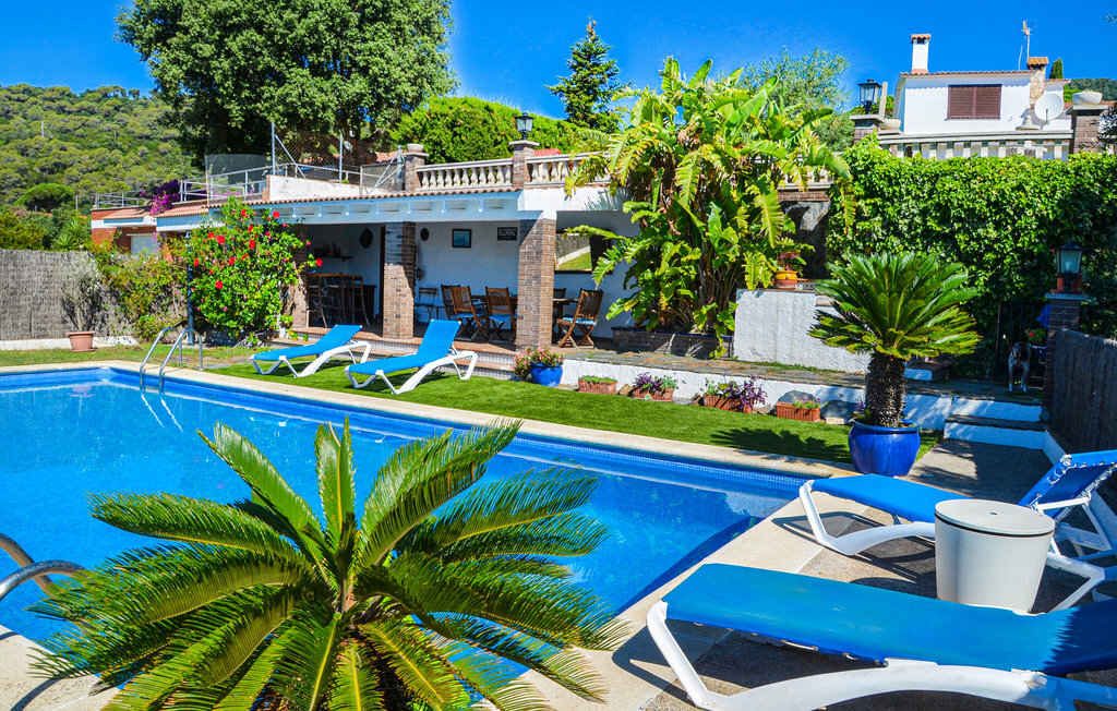 Bien-être à l'extérieur : Location de vacances disposant de chaises-longues et d'un ou plusieurs équipements tels que piscine extérieure, jacuzzi extérieur, lit à baldaquin de jardin etc...