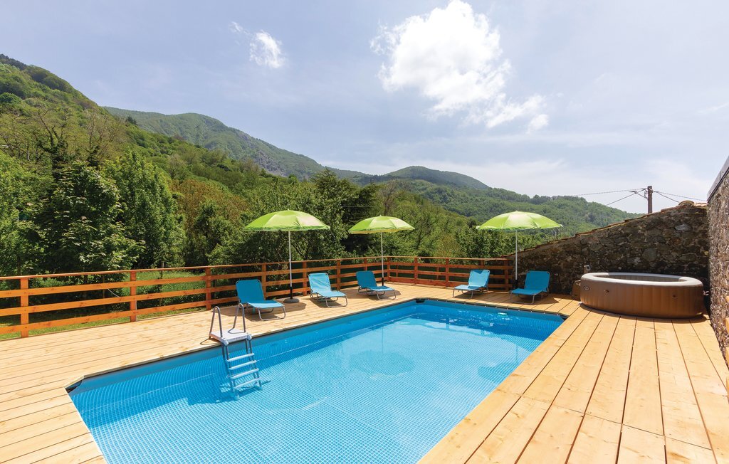 Bien-être à l'extérieur : Location de vacances disposant de chaises-longues et d'un ou plusieurs équipements tels que piscine extérieure, jacuzzi extérieur, lit à baldaquin de jardin etc...