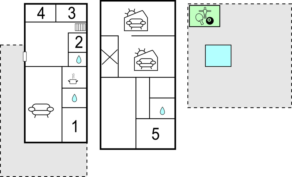 Location de vacances avec activités : Cette location de vacances comprend un ou plusieurs équipements de loisir (ping-pong, billard, baby-foot...)