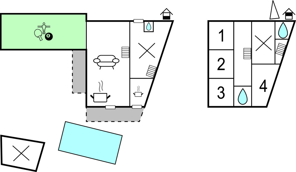 Location de vacances avec activités : Cette location de vacances comprend un ou plusieurs équipements de loisir (ping-pong, billard, baby-foot...)