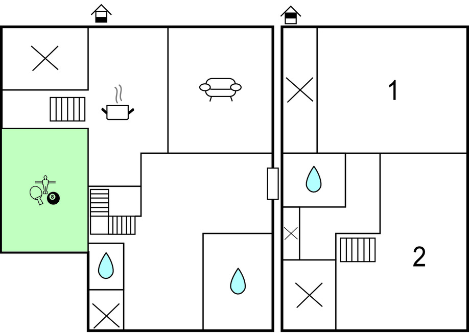 Location de vacances avec activités : Cette location de vacances comprend un ou plusieurs équipements de loisir (ping-pong, billard, baby-foot...)