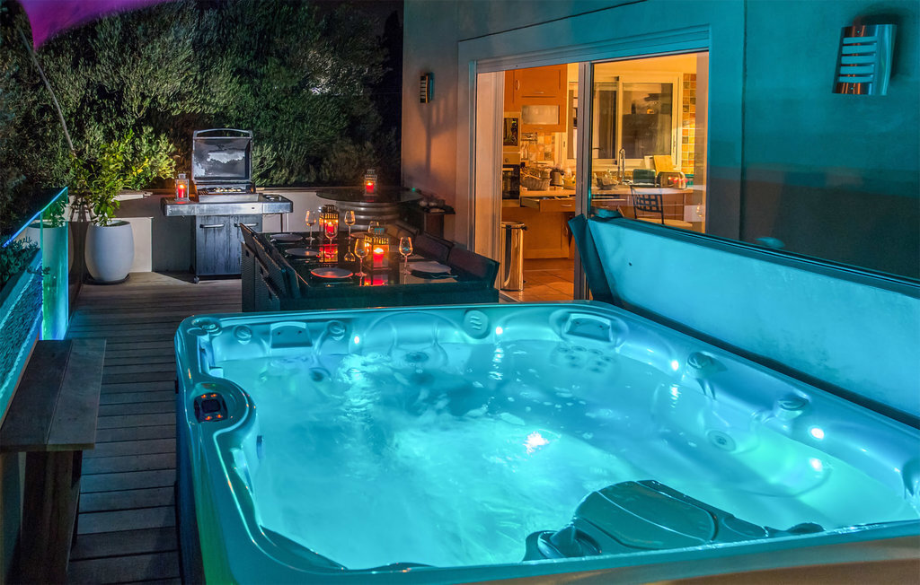 Bien-être à l'extérieur : Location de vacances disposant de chaises-longues et d'un ou plusieurs équipements tels que piscine extérieure, jacuzzi extérieur, lit à baldaquin de jardin etc...