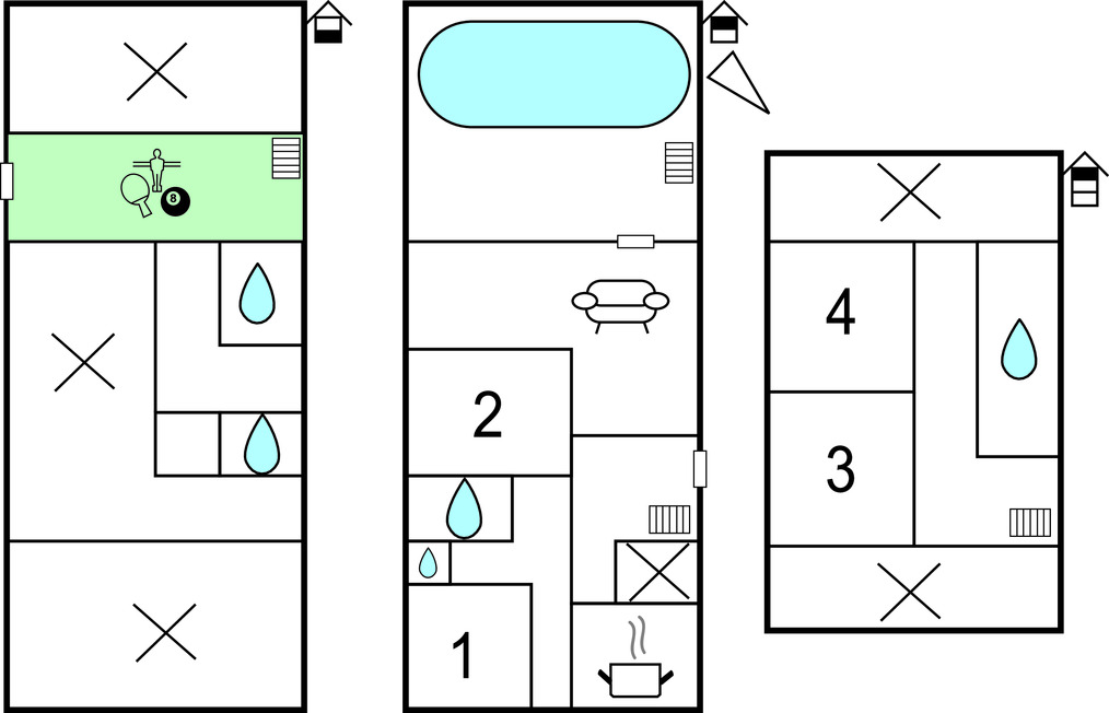 Location de vacances avec activités : Cette location de vacances comprend un ou plusieurs équipements de loisir (ping-pong, billard, baby-foot...)