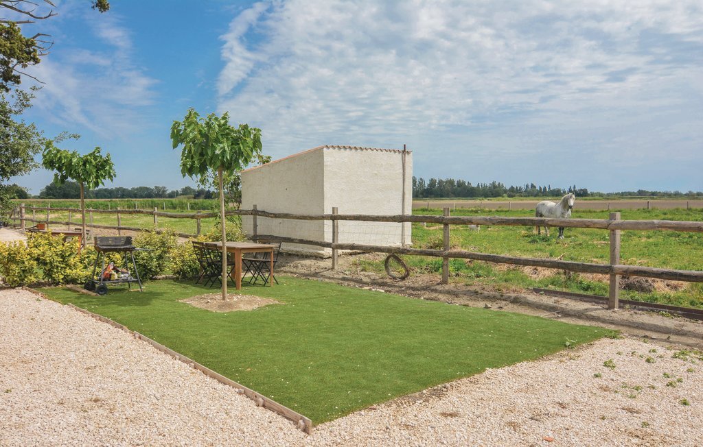 Cette maison de vacances située non loin de la Saline de Giraud ou des plus grands marais salants de Carmargue gâte ses hôtes avec une piscine et une vue magnifique sur la nature environnante. Sur la vaste propriété, il y a d'autres maisons de vacances et une belle piscine commune. La propriété offre beaucoup d'espace pour se détendre. Le meilleur endroit pour se détendre est la terrasse couverte avec chaises longues à côté de la piscine. Une table de ping-pong, un terrain de pétanque et des jeux pour enfants permettent également de se distraire sur la propriété. Petits et grands ne risquent donc pas de s'ennuyer ici. Le Sambuc dispose d'une petite épicerie, d'un restaurant et d'un bar. 25 km vous séparent de la plage de sable de Piémanson. Venez visiter Arles. Cette ville chargée d'histoire attire par ses nombreux restaurants et, le samedi matin, par son marché de producteurs typiquement provençal. Aigues-Mortes, avec son beau port, ses remparts entièrement conservés et d'autres curiosités architecturales, vaut également le détour. Dans des stations balnéaires comme les Saintes-Maries-de-la-Mer ou le Grau-du-Roi, vous pourrez passer une magnifique journée à la plage. Un peu plus loin, vous pourrez flâner dans Nîmes et ses anciennes arènes romaines ou vous offrir un verre sur la magnifique place de la Comédie à Montpellier. Un peu en retrait dans l'arrière-pays, la ville typiquement provençale de Salon-de-Provence attire les visiteurs avec la maison natale de Nostradamus, et à moins d'un kilomètre, les amateurs de pêche peuvent s'adonner à leur hobby sur le Rhône. La propriété abrite également un cheval et, sur demande préalable, vous pouvez amener votre propre cheval. Les groupes plus importants peuvent réserver plusieurs unités en même temps : FPB291, FPB292, FPB293 et FPB294. Cette location de vacances très agréable vous promet des vacances réussies dans le département des Bouches du Rhône. Toilettes communes disponibles à la piscine.
