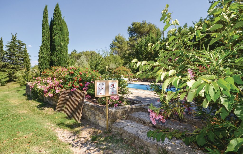 Passez vos vacances dans cette petite maison sobre avec accès à la piscine et vue sur le Mont Ventoux.