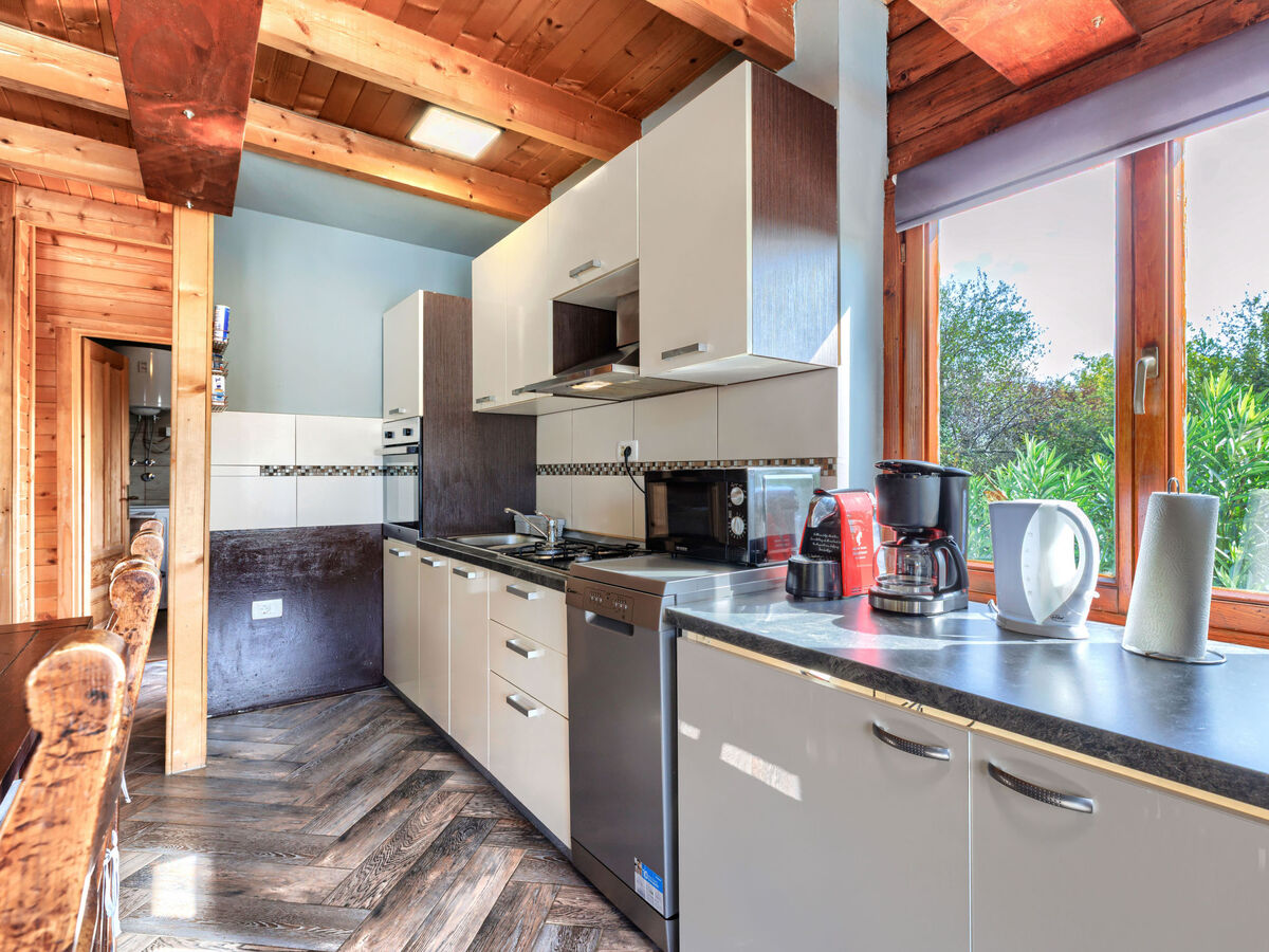 Cuisine ouverte (4 plaques de cuisson, four, lave-vaisselle, micro-ondes, congélateur, cafetière électrique).