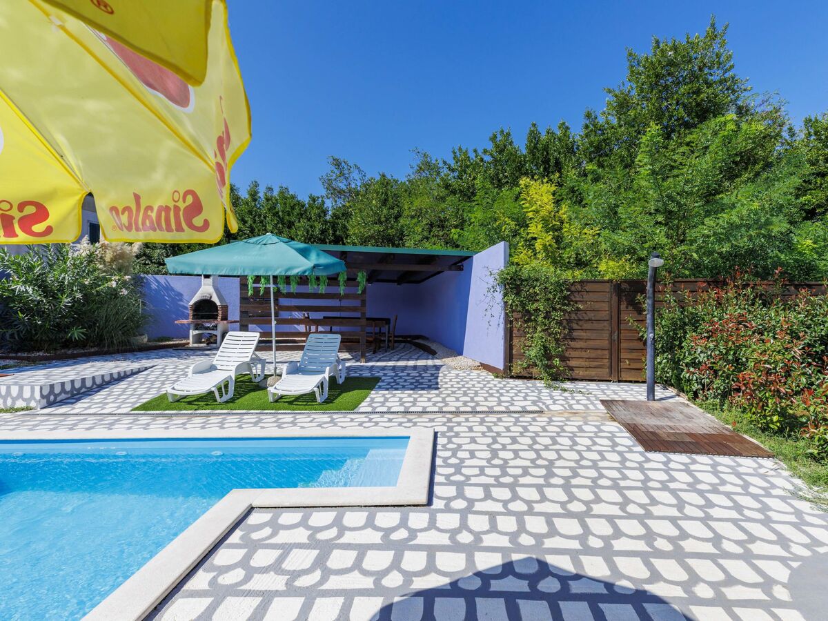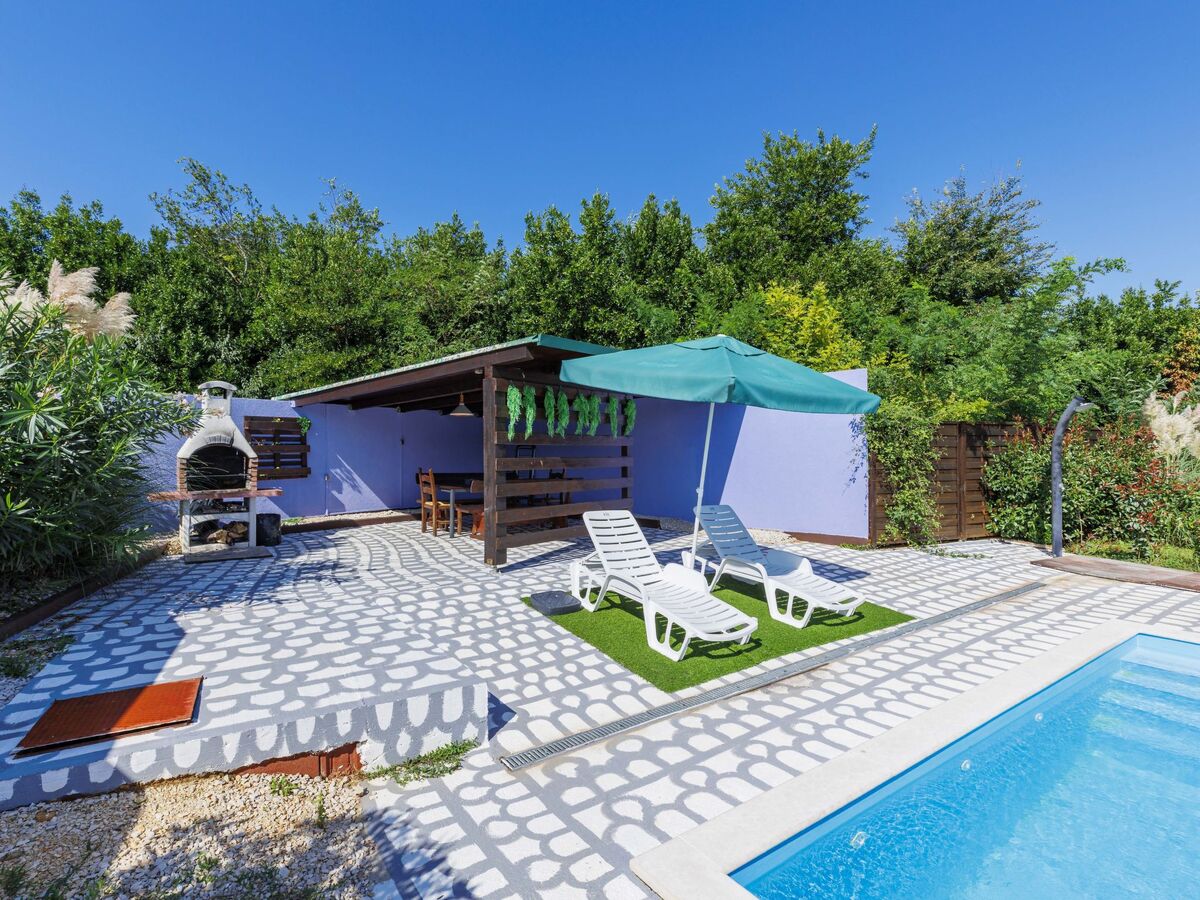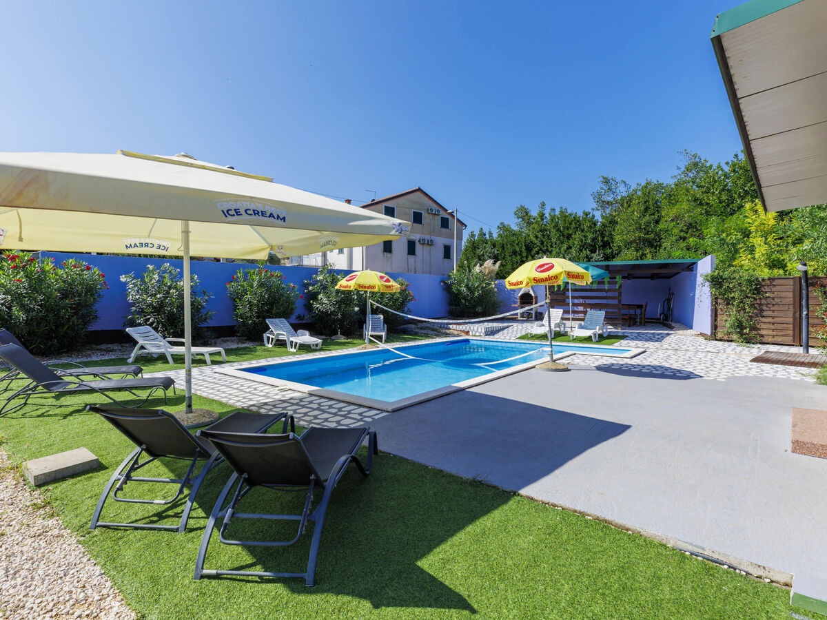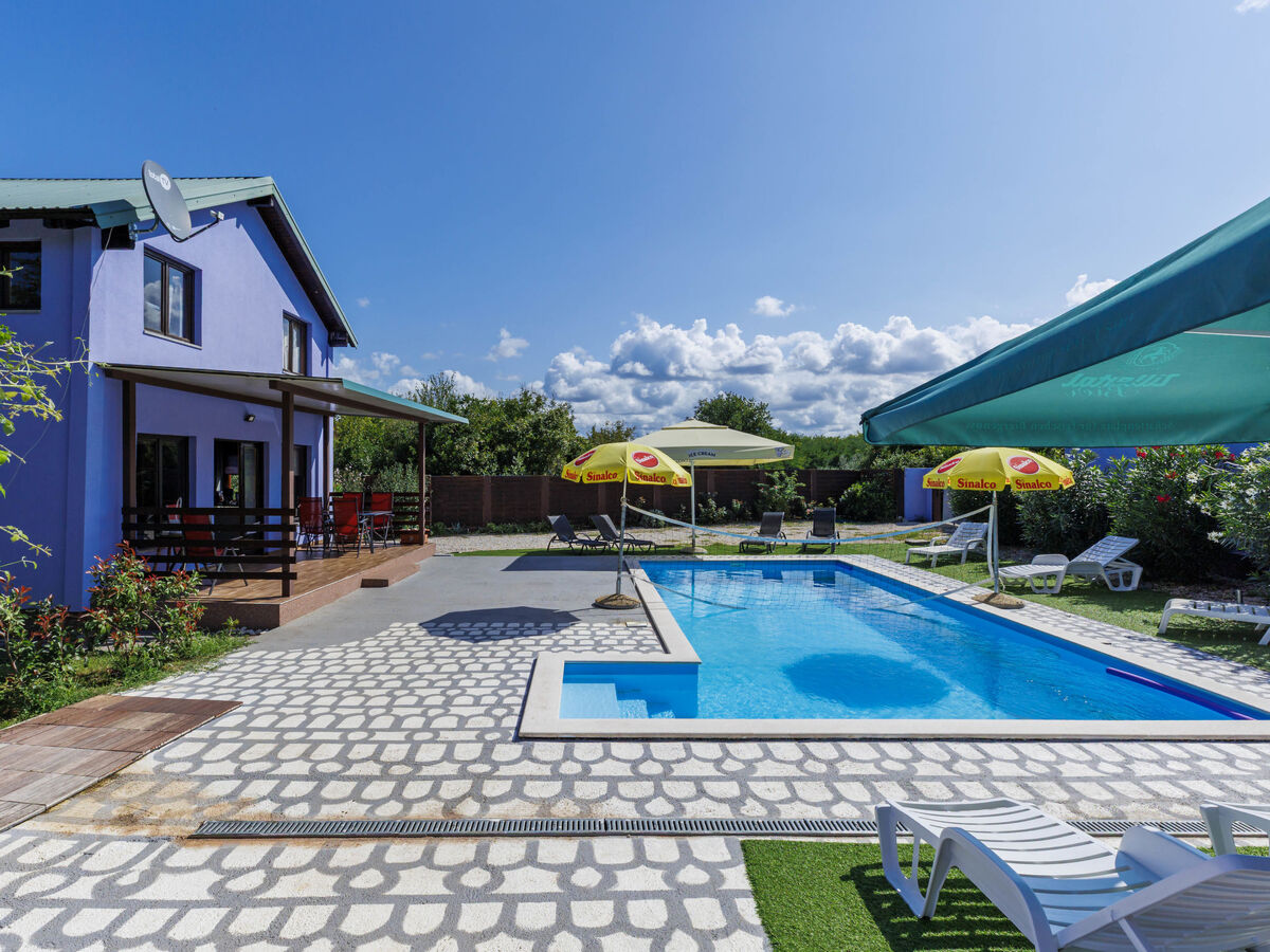 A usage privé: terrain 750 m2 (clôturé), piscine rectangulaire (8 x 4 m, profondeur 150 cm, disponibilité saisonnière: 04.Avr.