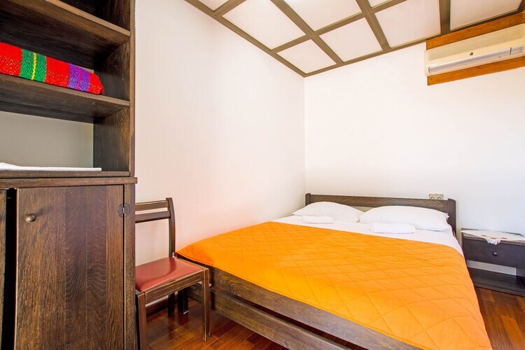 L'installation de climatisation et la cheminée gardent l'intérieur à jamais confortable. La cuisine ouverte avec une bouilloire électrique, une cuisinière, une machine à café et un four vous invite à cuisiner des repas de choix. Vous pouvez vous profiter de vous-même dans la douche de soleil. Sur demande, un lit est proposé pour les petits voyageurs. Un animal de compagnie est autorisé sur la propriété. Le stationnement est disponible pour votre commodité.