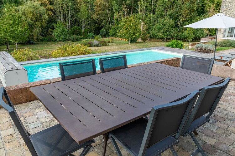 Rez-de-chaussée: (cuisine(bouilloire, plaque de cuisson(vitrocéramique), cafetière/percolateur, four(grill), micro ondes, lave-vaisselle , réfrigérateur(+ congélateur)), salle à manger-salon(coin salon, baby-foot), chambre(lit double(140 x 200 cm)), salle de bains(douche, lavabo), WC) jardin, mobilier de jardin, transats, barbecue, parking, piscine(privé, chauffée, 11 x 4 m., ouvert de 1/2 Juin jusqu'à (inclus) 1/2 Sept), tennis de table/ping-pong