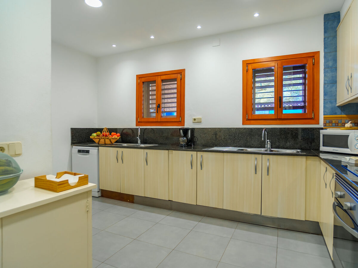 Cuisine (four, lave-vaisselle, 3 plaques vitrocéramiques, grille-pain, micro-ondes, congélateur, cafetière électrique).
