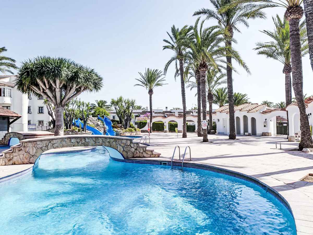 Dans le quartier de Las Marinas, à 4.5 km du centre de Dénia, à 400 m de la mer, route à traverser.