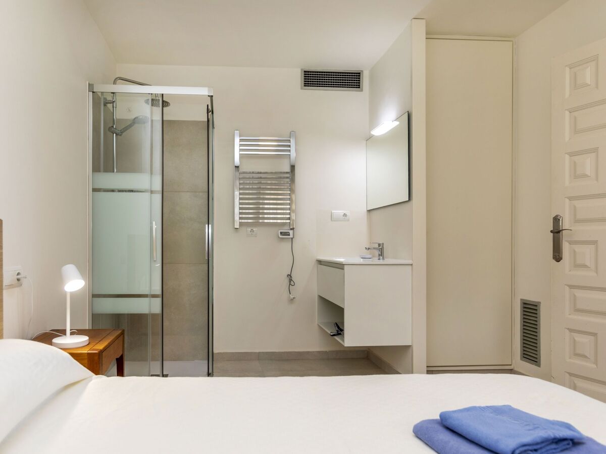 1 chambre avec 1 grand-lit (150 cm, longueur 190 cm), douche.
