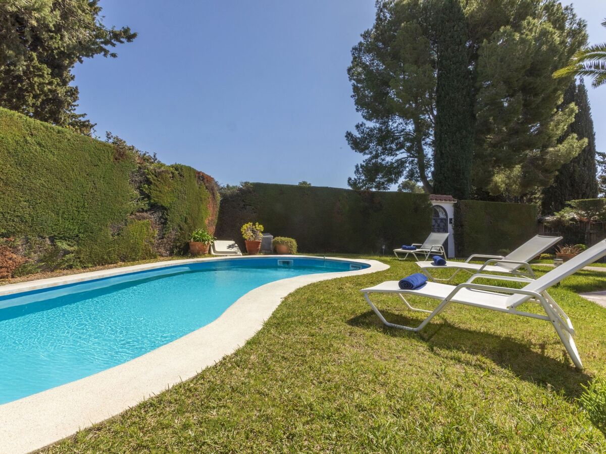 A usage privé: beau jardin entretenu (clôturé) avec pelouse 550 m2 fleurs, piscine en forme d’haricot (3 x 5 m, profondeur 100 - 182 cm, disponibilité saisonnière: 01.Jan.