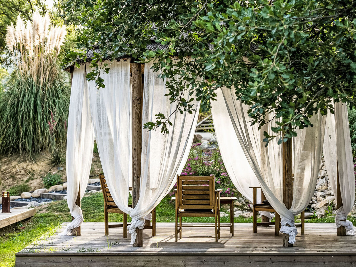 En commun: terrain à l'état naturel 45'000 m2 avec plantes et arbres, piscine en forme d’haricot chauffée (disponibilité saisonnière: 03.Avr.