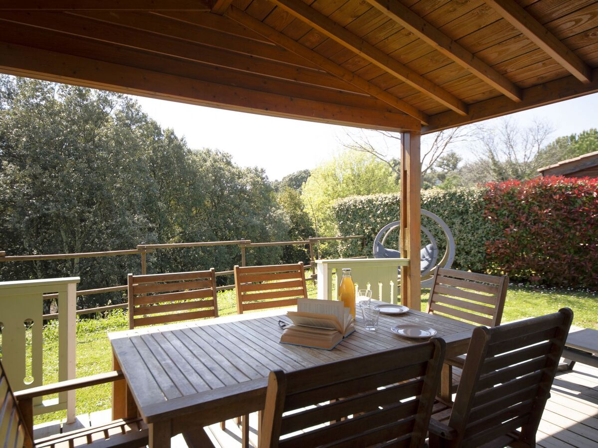 Clair, aménagement avec beaucoup de bois: séjour/salle à manger avec table pour les repas.