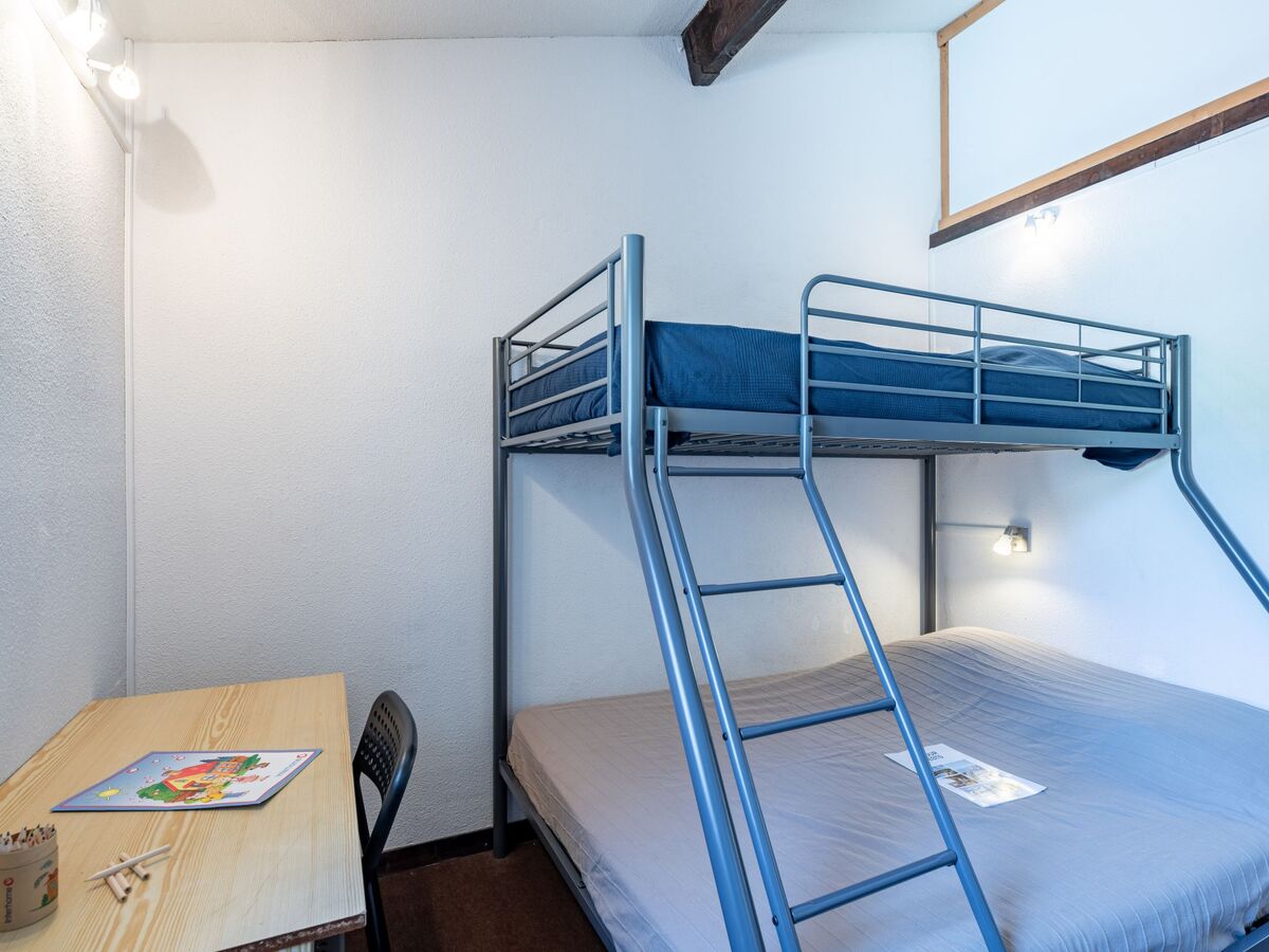 À l'étage supérieur: 1 chambre avec 1 x 1 lits superposés (90 cm, longueur 190 cm), 1 lit double (140 cm, longueur 190 cm).