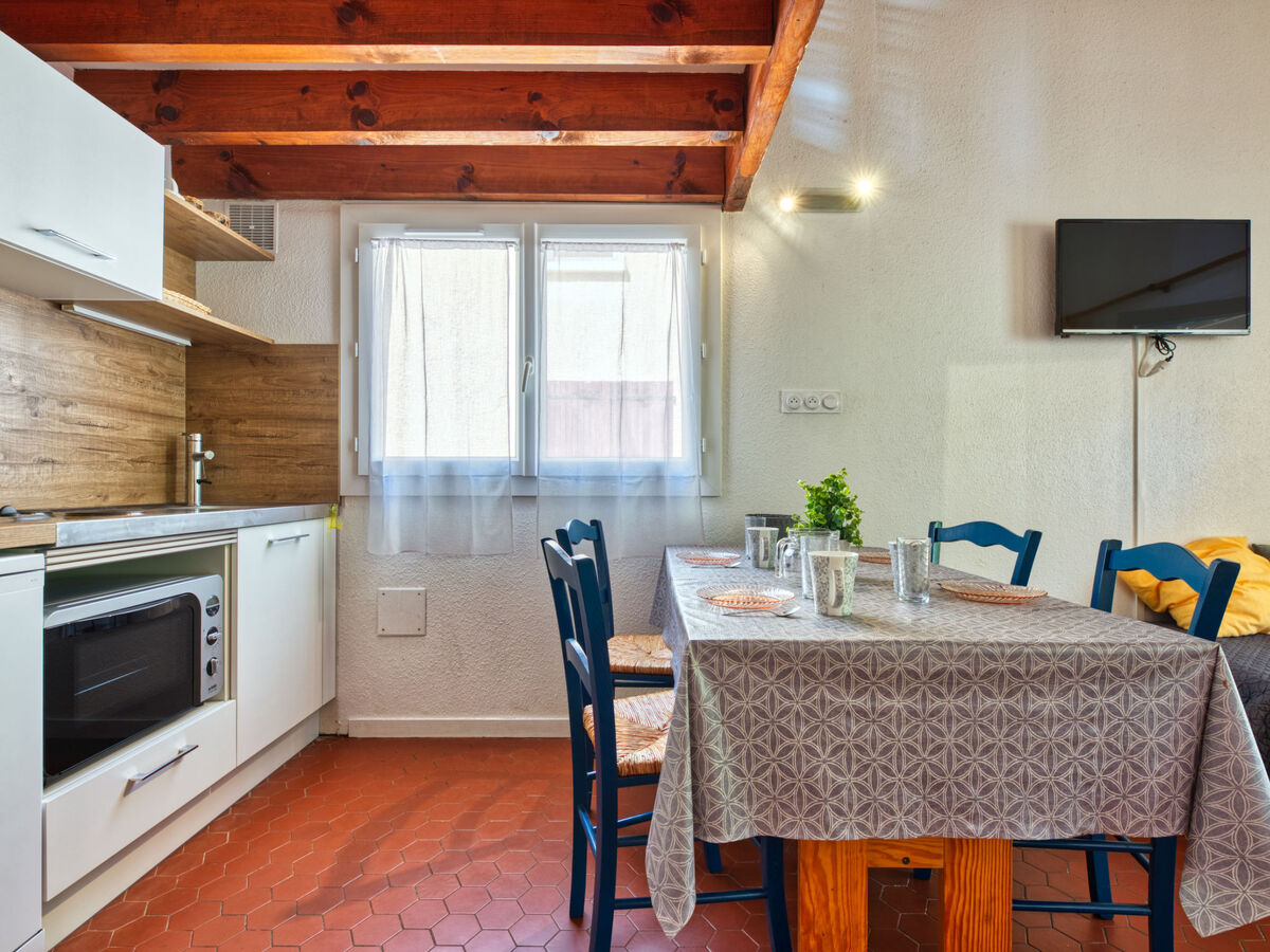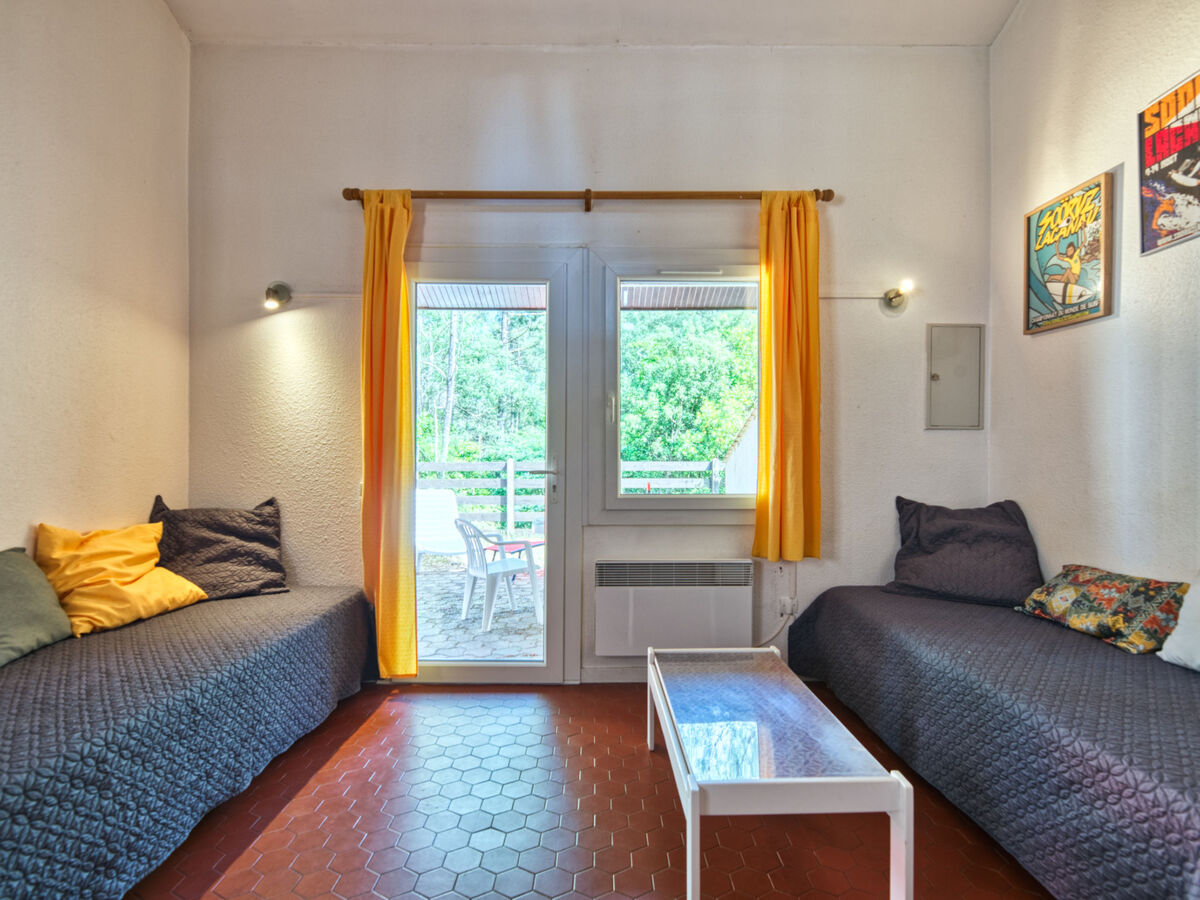 Séjour/salle à manger avec 2 lits (90 cm, longueur 190 cm), TV.