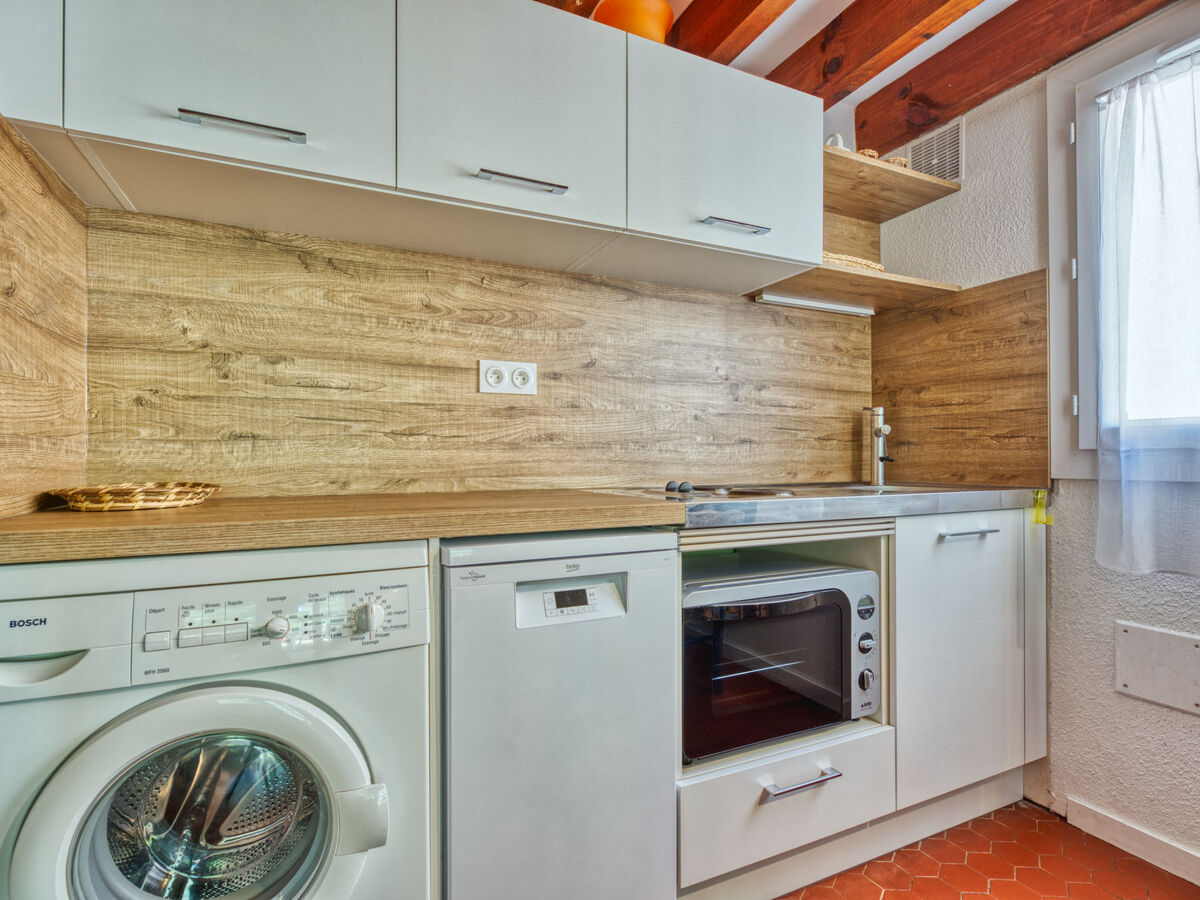 Cuisine ouverte (2 plaques de cuisson, four, lave-vaisselle, grille-pain, bouilloire électrique, micro-ondes, cafetière électrique).