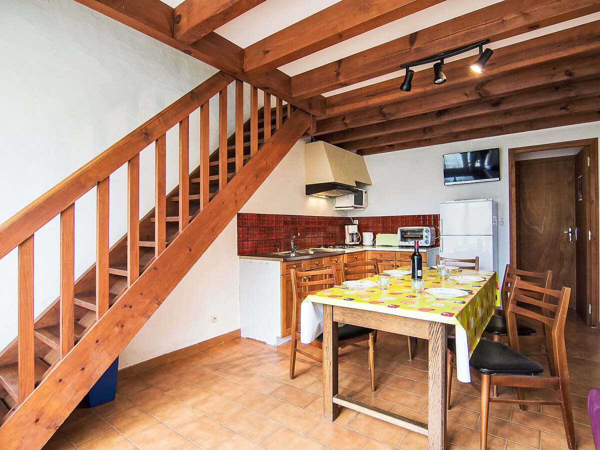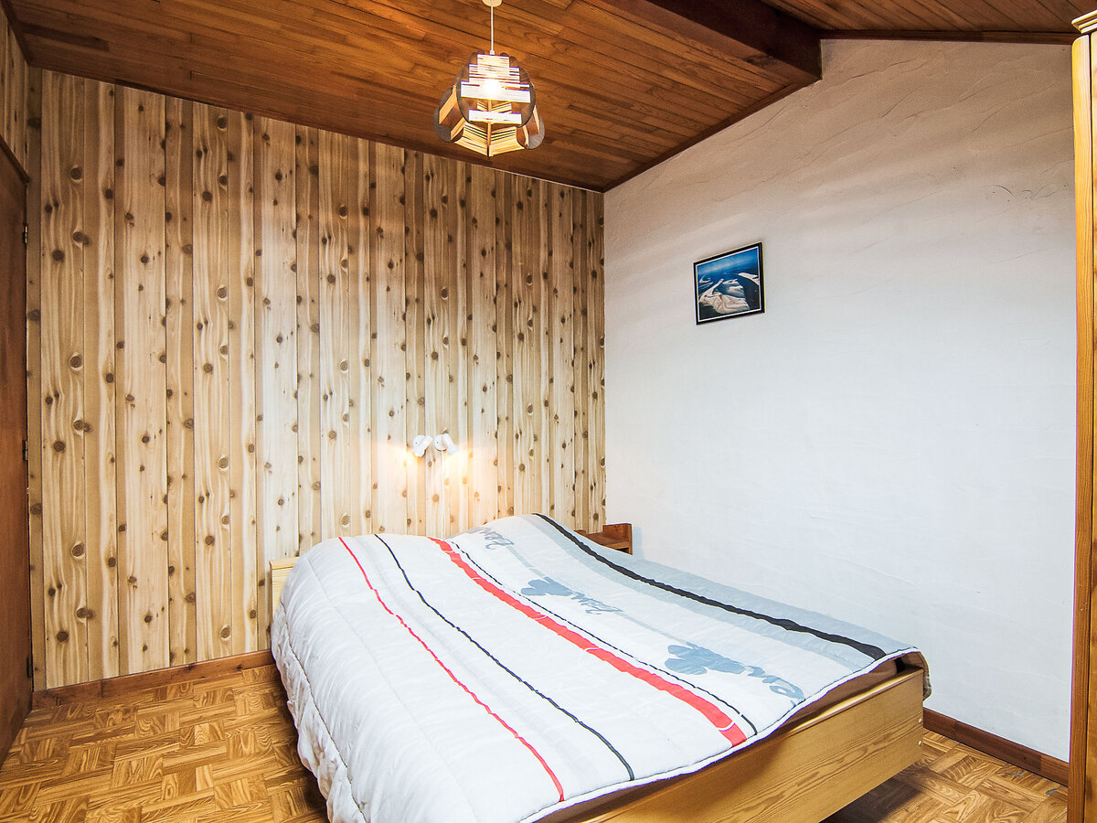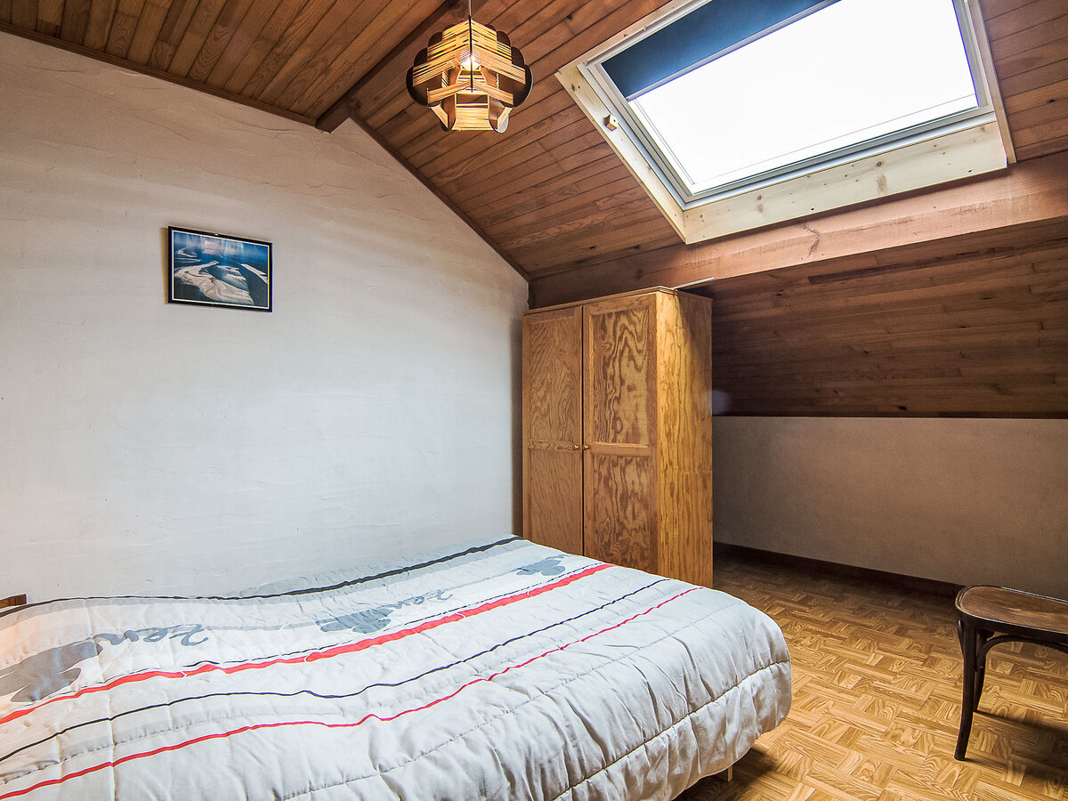 À l'étage supérieur: 1 chambre, mansardée avec 1 grand-lit (1 x 140 cm, longueur 190 cm).