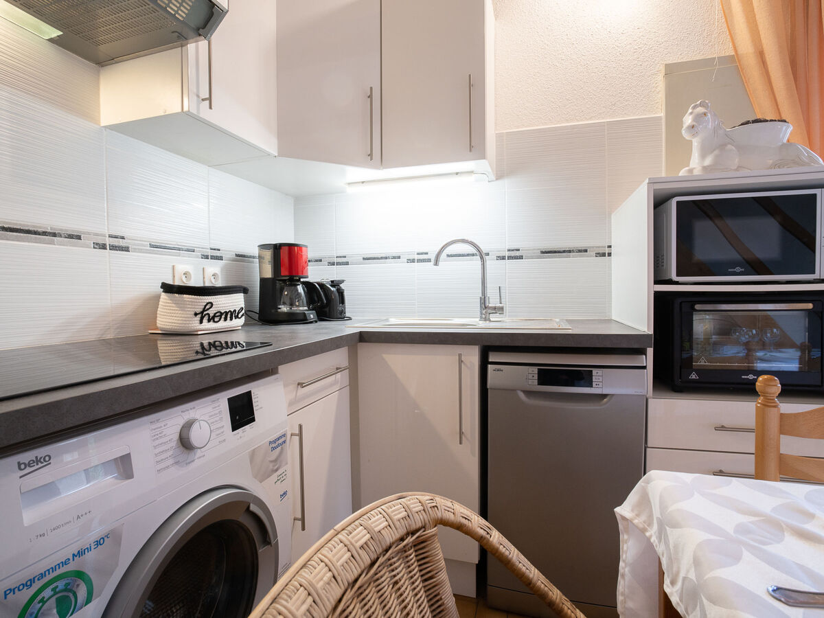 Coin cuisine (four, lave-vaisselle, 2 plaques vitrocéramiques, micro-ondes, congélateur, cafetière électrique, Capsules pour machine à café (nespresso) (NON INCLUSES)).