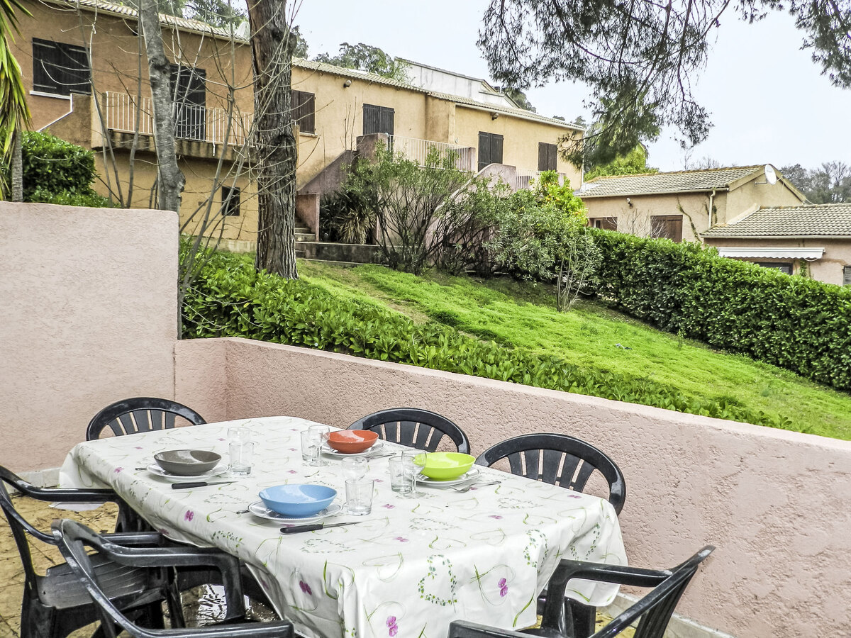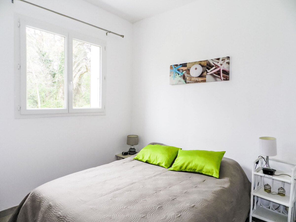 En bordure de la localité, situation tranquille, à 2 km de la mer, dans la verdure.
