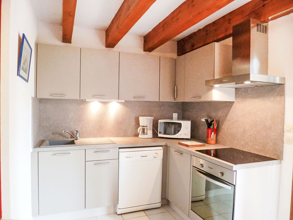 Coin cuisine (four, lave-vaisselle, 4 plaques vitrocéramiques, micro-ondes, congélateur).