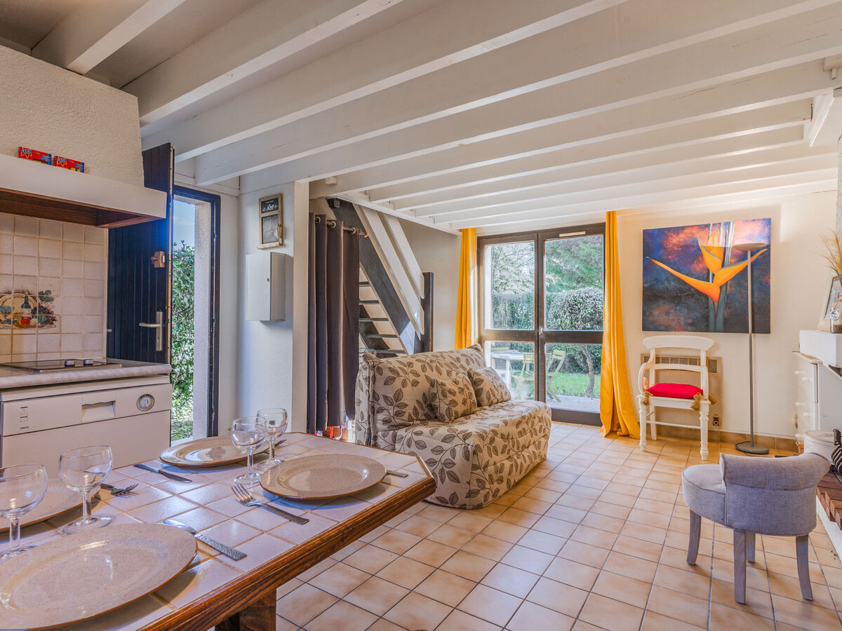 Séjour/salle à manger avec 1 divan-lit double (130 cm, longueur 190 cm), TV (écran plat).