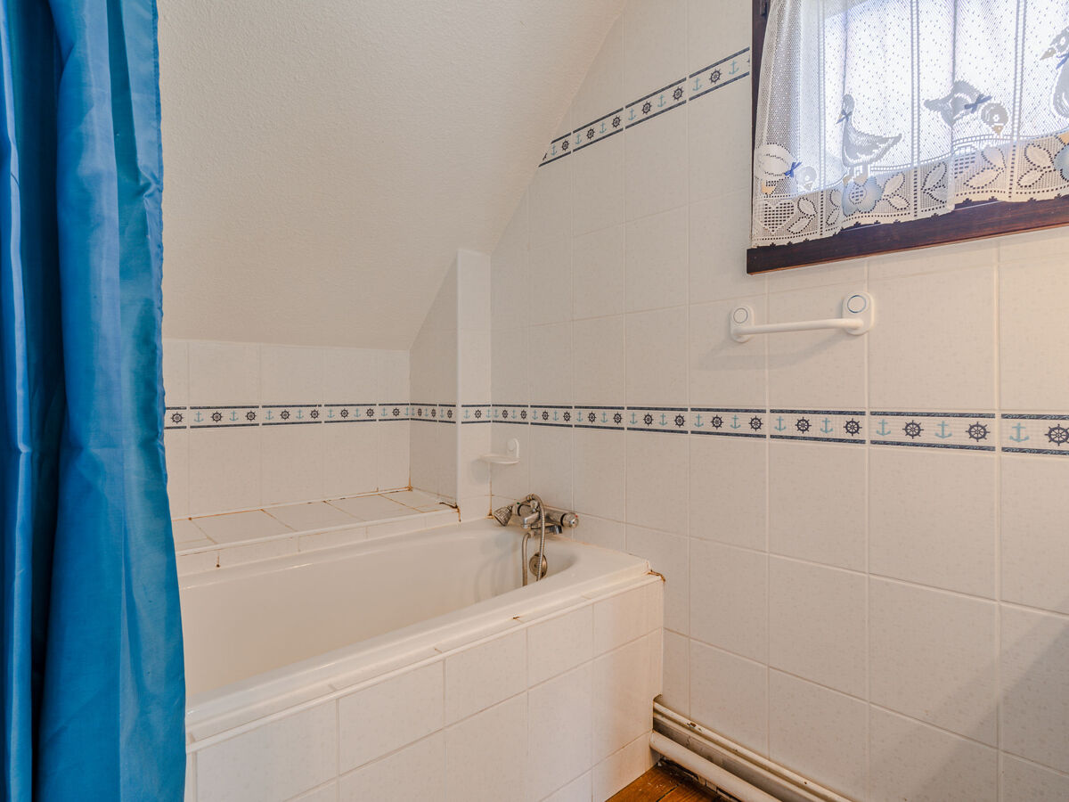 À l'étage supérieur: 1 chambre, mansardée avec 1 x 2 lits superposés (90 cm, longueur 190 cm).