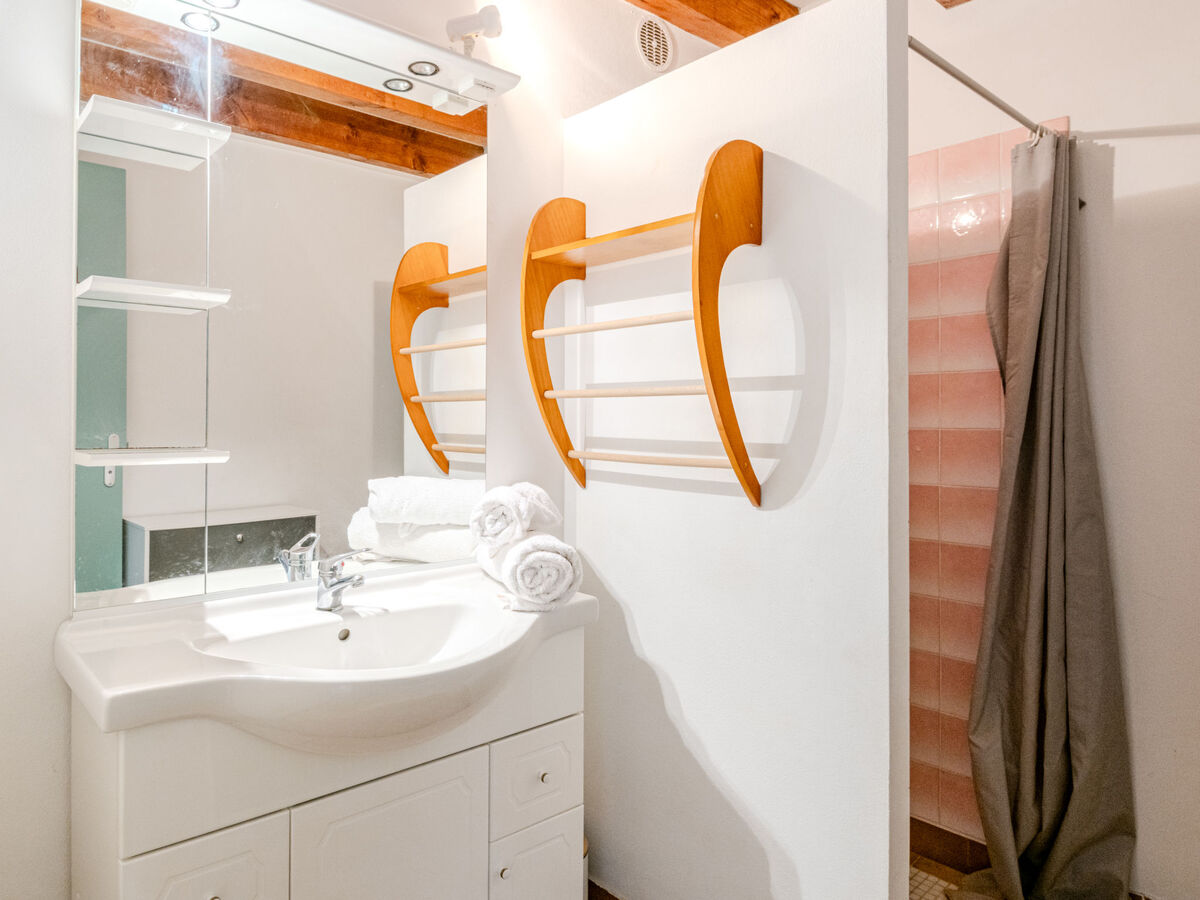 À l'étage supérieur: 1 chambre, mansardée avec 2 lits (90 cm, longueur 190 cm).