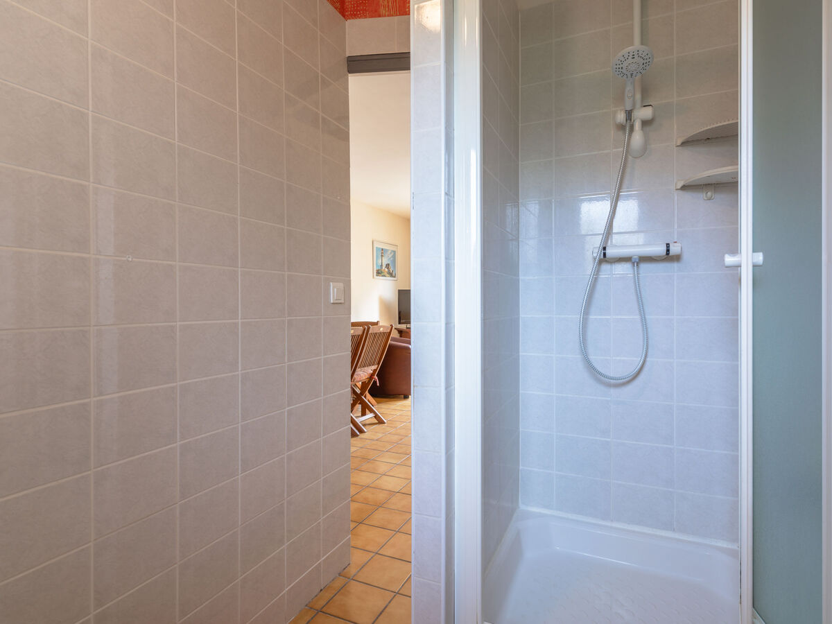 À l'étage supérieur: 1 chambre avec 1 grand-lit (2 x 90 cm, longueur 190 cm), TV (écran plat).