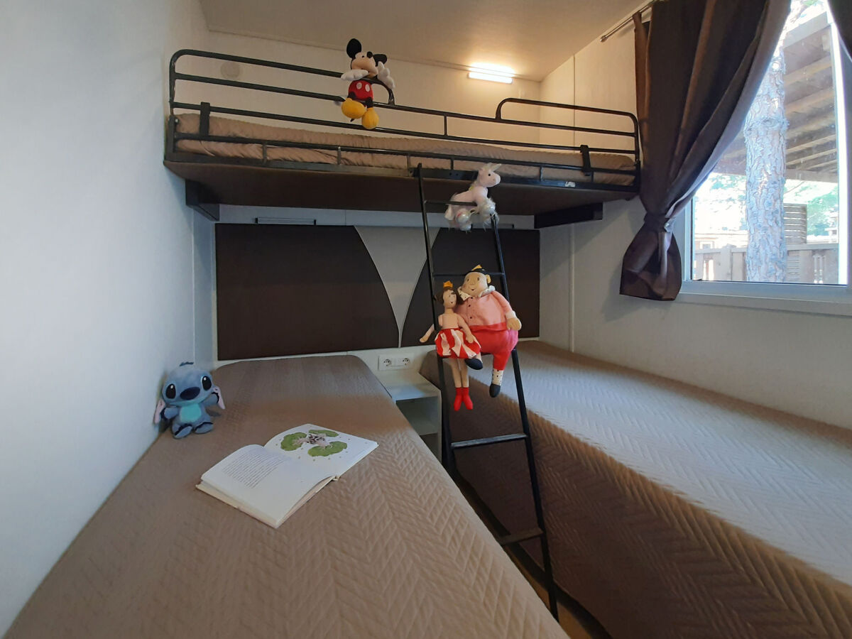 1 chambre avec 2 lits (70 cm, longueur 190 cm), 1 x 1 lits superposés (70 cm, longueur 185 cm).